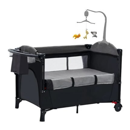 6-in-1 Foldable Baby Crib with Activity Center Diaper Changing Table