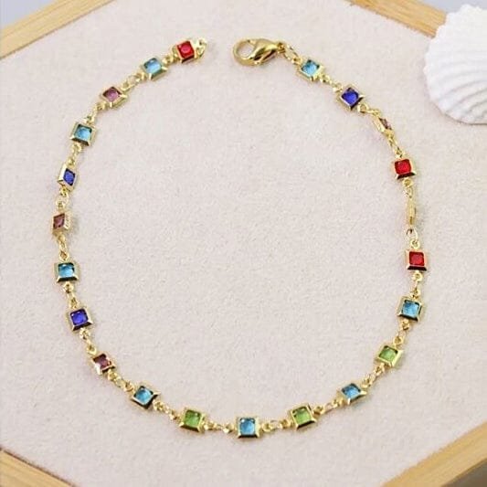 Light Multi Color Crystal Square Ankle Bracelet
