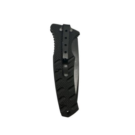 Folding knife with a spring assisted opening 3.5″ Black 440 stainless steel blade in drop point design. Features: 3 1/2″