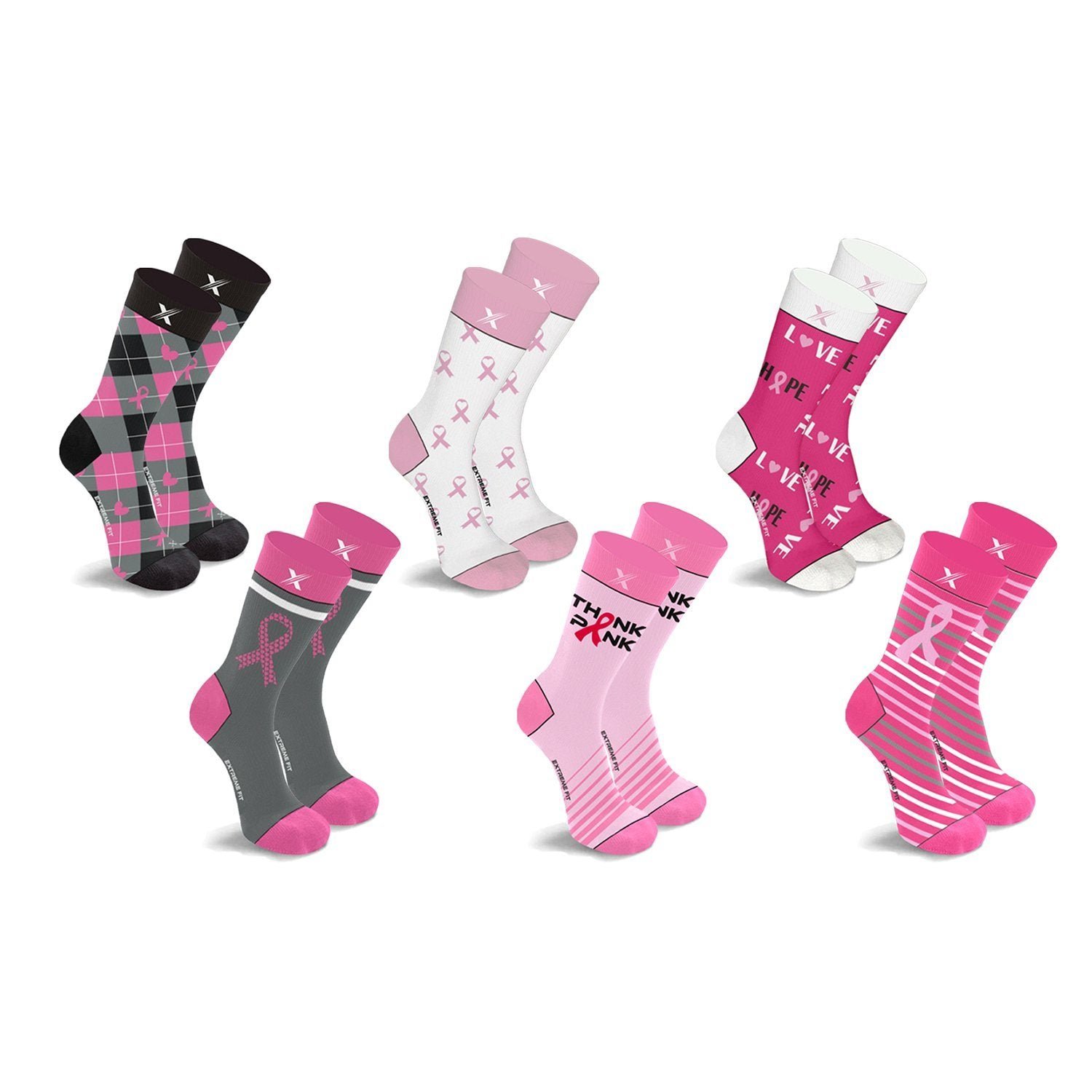 6-Pairs: Breast Cancer Awareness Crew Length Everyday Wear Compression Socks
