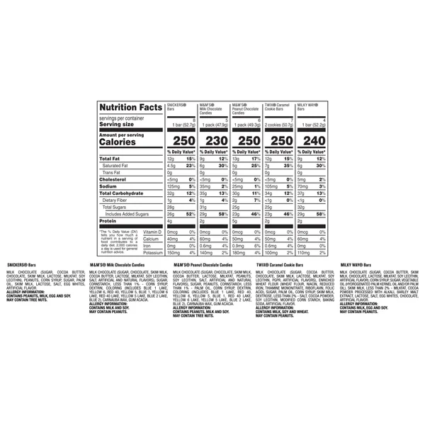 This 30-count variety mix of full size chocolate bars features SNICKERS, TWIX, M&M’S Peanut Chocolate Candies, M&M’S Milk Chocolate Candies and MILKY WAY Chocolate Candy Bars.