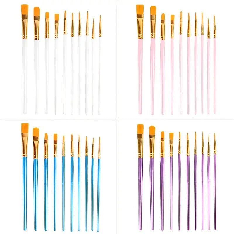 10-Pieces: Artist Paintbrush Nylon Round Pointed Flat Head Set