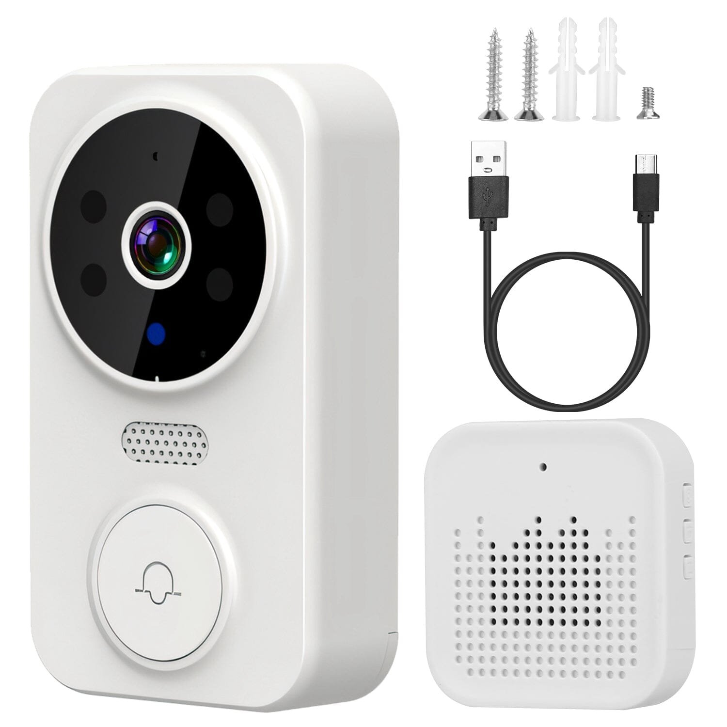 - Free Cloud Storage: Compared to other doorbell camera. we provide perpetual free cloud storage service for every buyer. no need to waste money to buy extra MMC card or subscription fee. Sticker and pack of screws are included as assemble options. you can easily install our doorbell on the door.