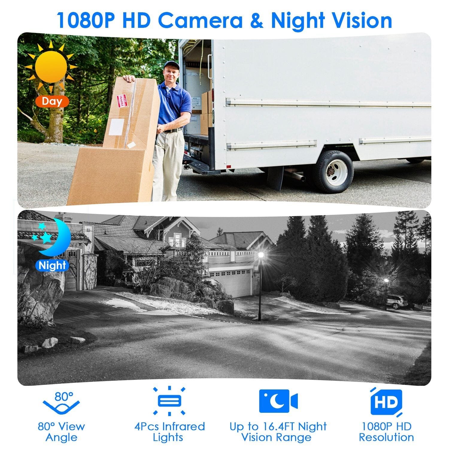 - 1080P Full HD & Night Vision: The 1080P camera is equipped with 4pcs infrared light. which is able to provide HD videos with a great amount of details regardless of ambient light and weather conditions. With a field of vision of 80 degrees. it can capture more of what’s going in front of the door. It can serve as important evidence when a thief breaks into your house.(Note: Our device is not waterproof.)