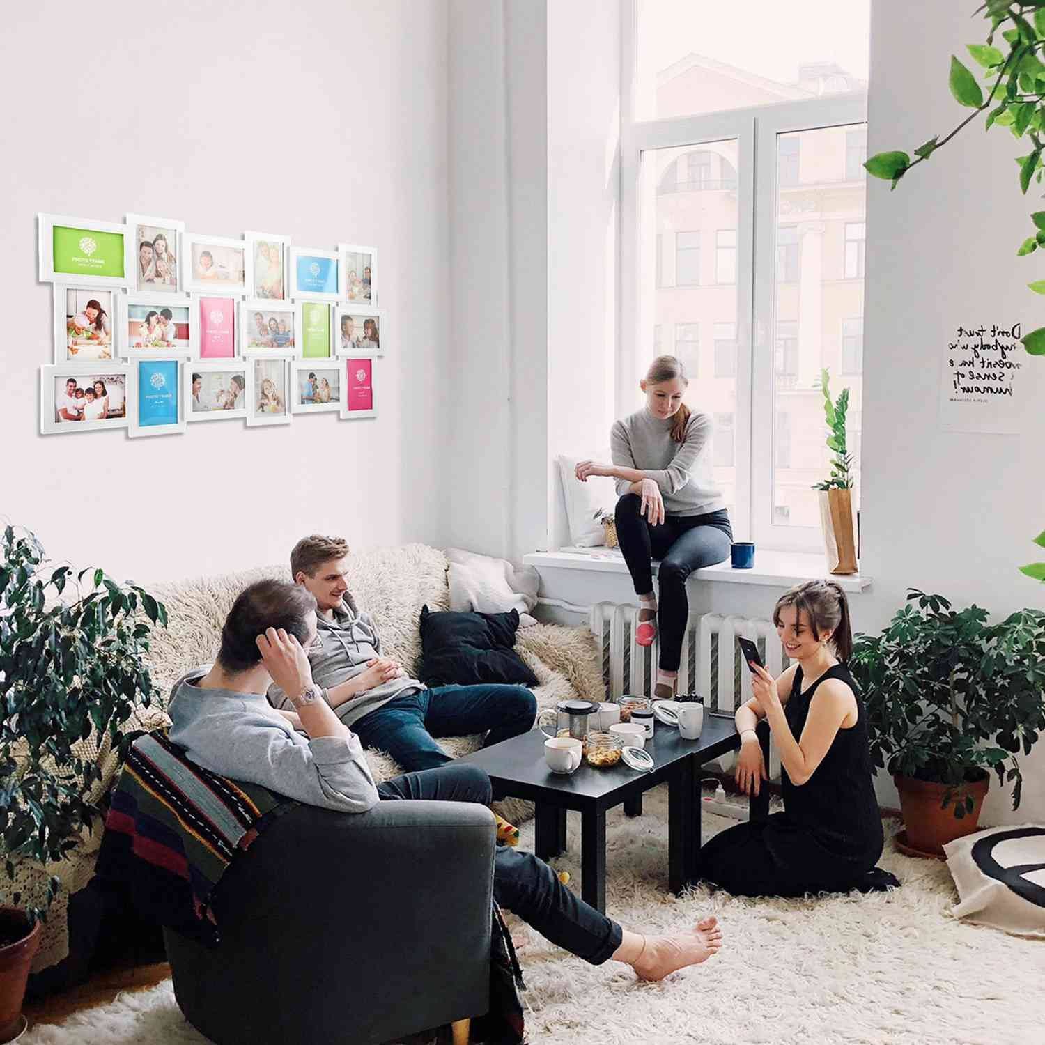 - Multi-Photo Display: Available in types of 12 openings and 18 openings with different colors (white and black). the picture frame will satisfy all your needs. Designed with horizontal and vertical orientations. you can layout freely and make it in harmony with your home decor. In addition. the picture frames adopts the glass protection display. which clearly show your pictures and safely protect them.