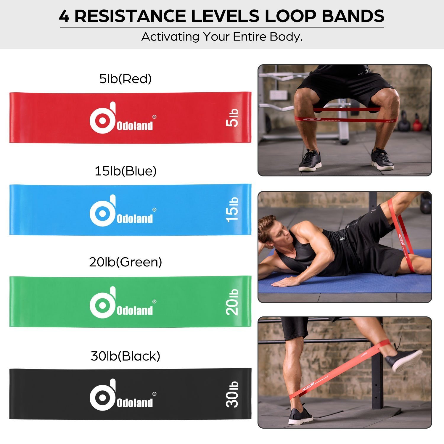 - 4 x Loop Bands: red- 10 Lbs. green- 20 Lbs. blue- 30 Lbs. black- 40 Lbs.