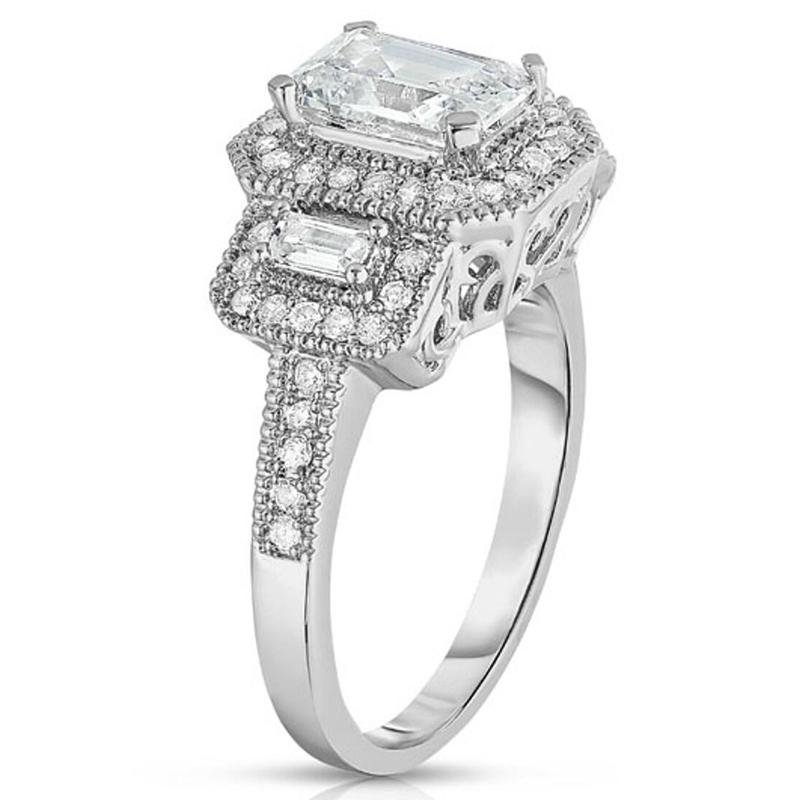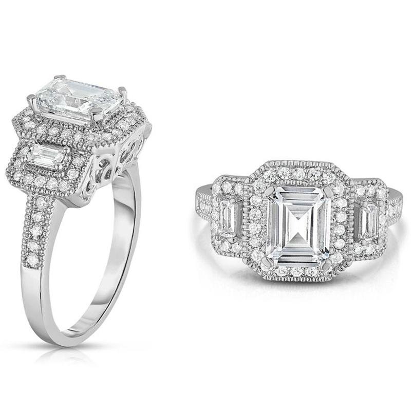 45 arviota tuotteelle 18k White Gold Tri Stone Emerald Cut Cubic Zirconia Ring