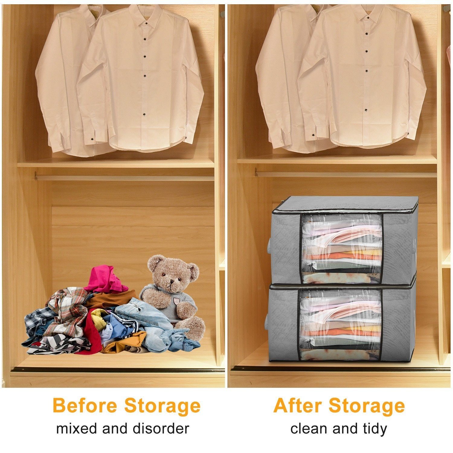 - Keep Your Home Neat with Large Capacity: The storage bag comes in a set of 2 and the size of each bag is 60 x 40 x 35cm / 23.6x 15.7 x13.8 in. about 90L. It is spacious enough for your comforters. blankets. pillows. jackets. linens. holiday decorations. toys. photos. baby clothes or other clothes.