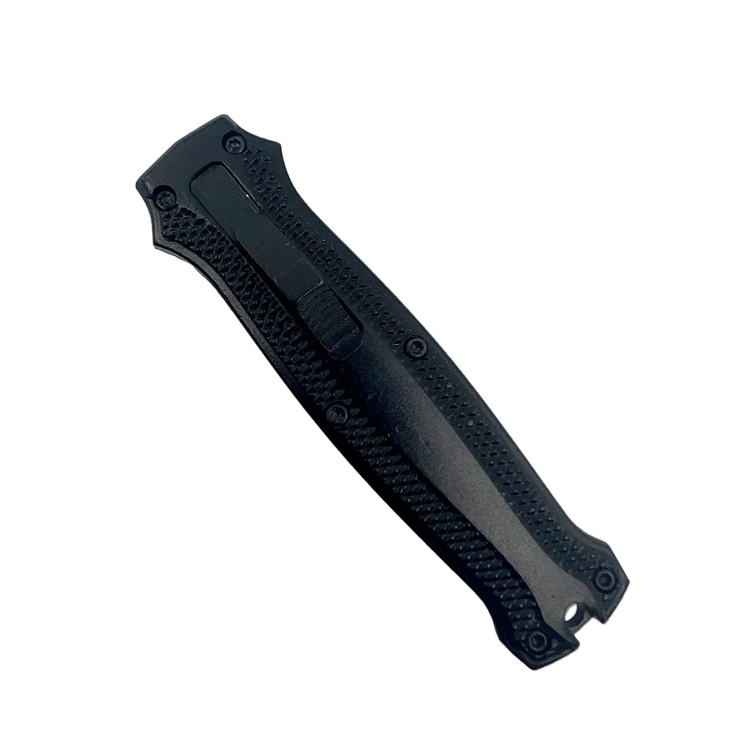 - Black aluminum handle with hole for keyring