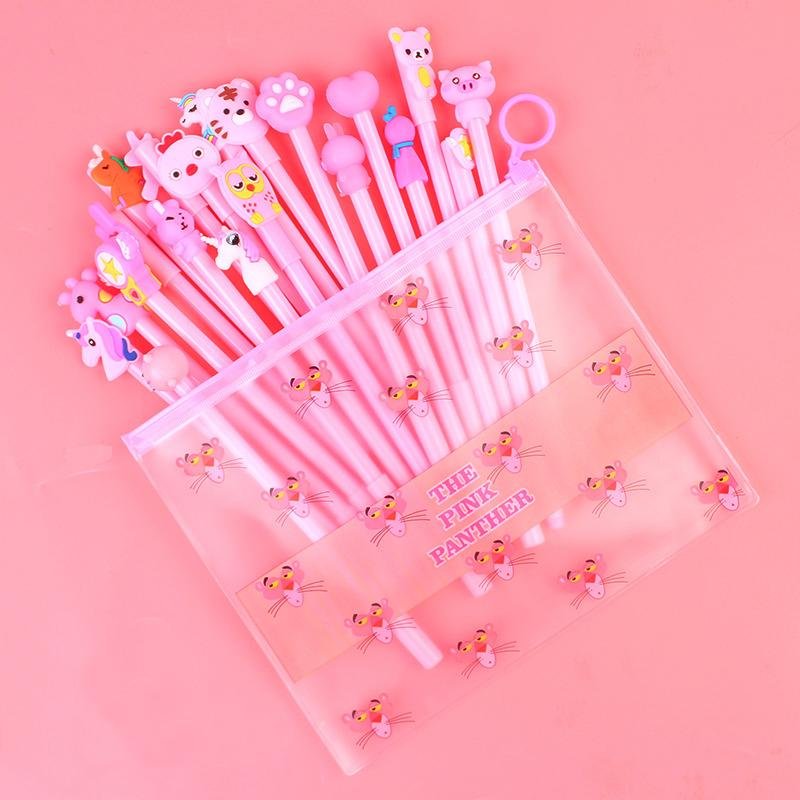 - 20 packs of cute gel pens – this set has a variety of styles: unicorn. flamingo. heart. cute pig. cat. etc. Each pen is 7 inches long. the ink color is black. and the nib is 0.5 mm.