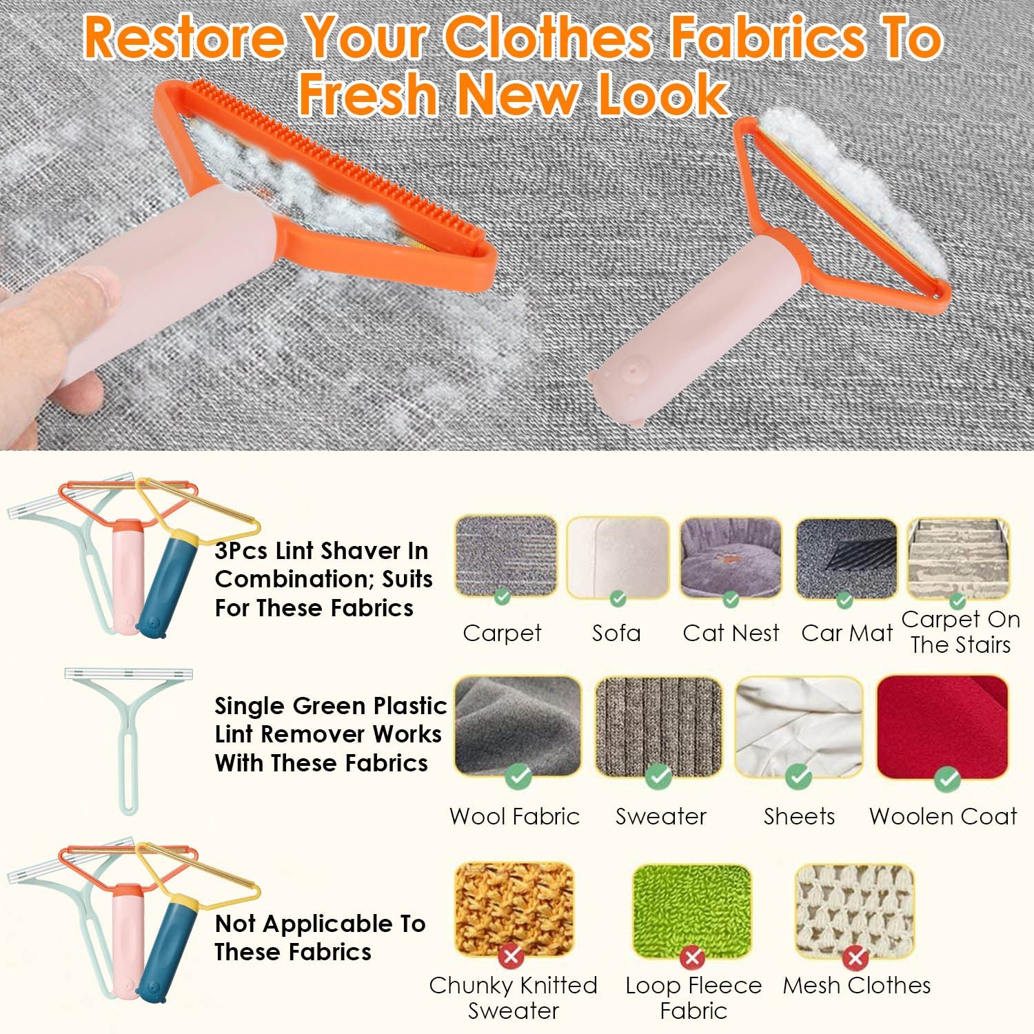 - 3 Layers & Flat Edge: Featured with smooth plastic teeth. our green lint remover won’t snag fabrics or clothes. Flat edge. can even scrape the corners easily. This lint cleaner can safely and efficiently remove dog and cat hair. furs. fuzz. pills. and hairball from the sweater. blankets. curtains. jackets and more.