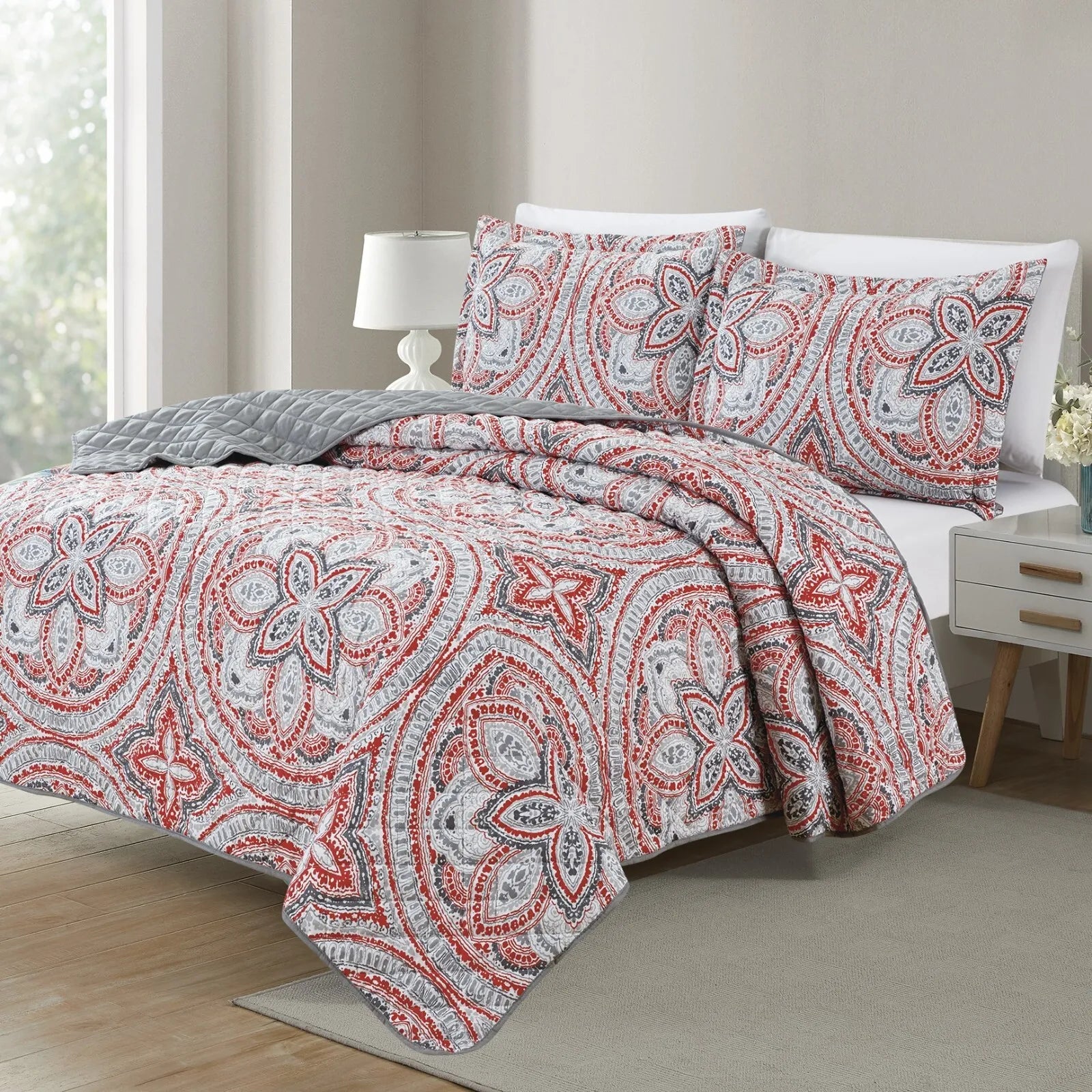 3-Piece Set: Bibb Home Printed Reversible Quilt Set