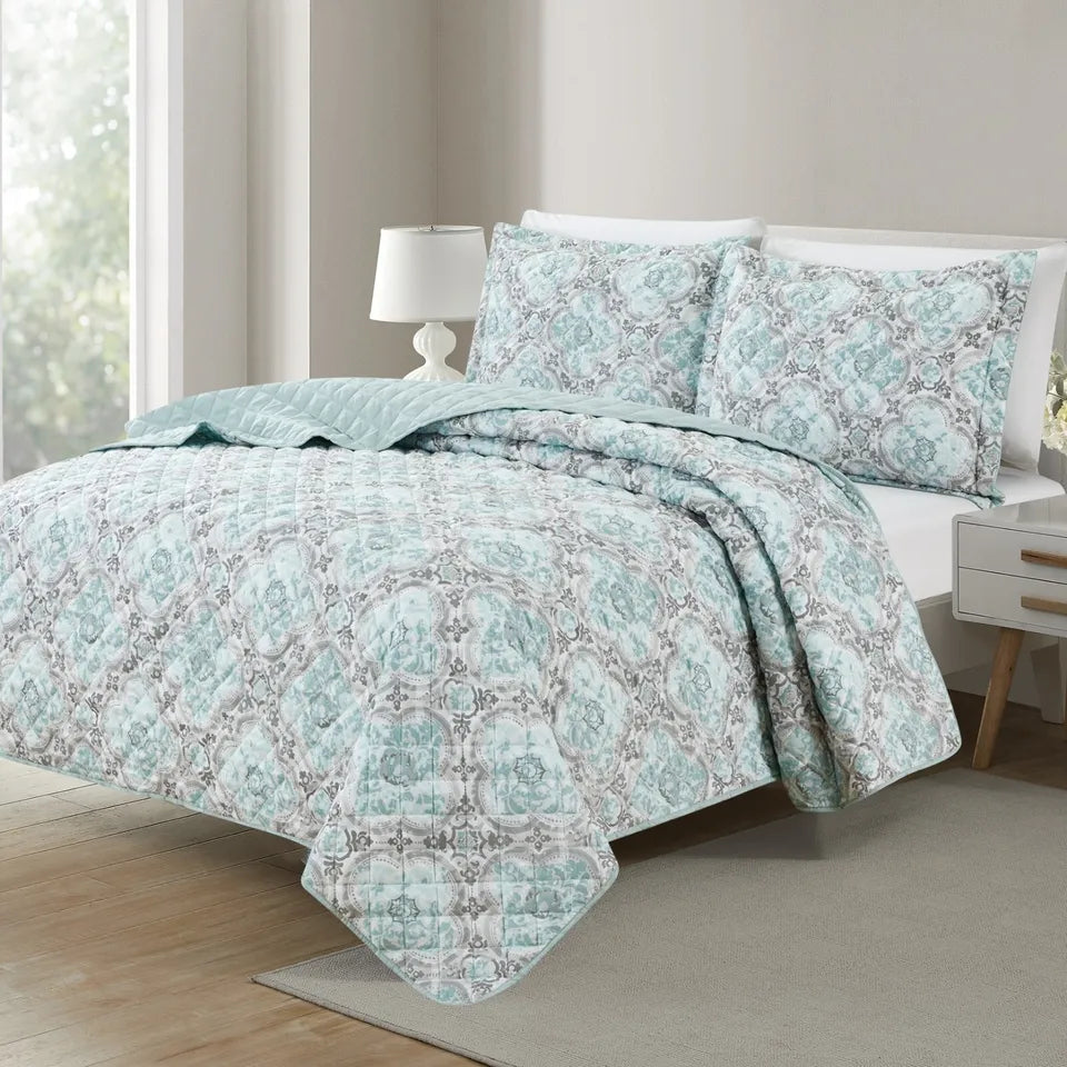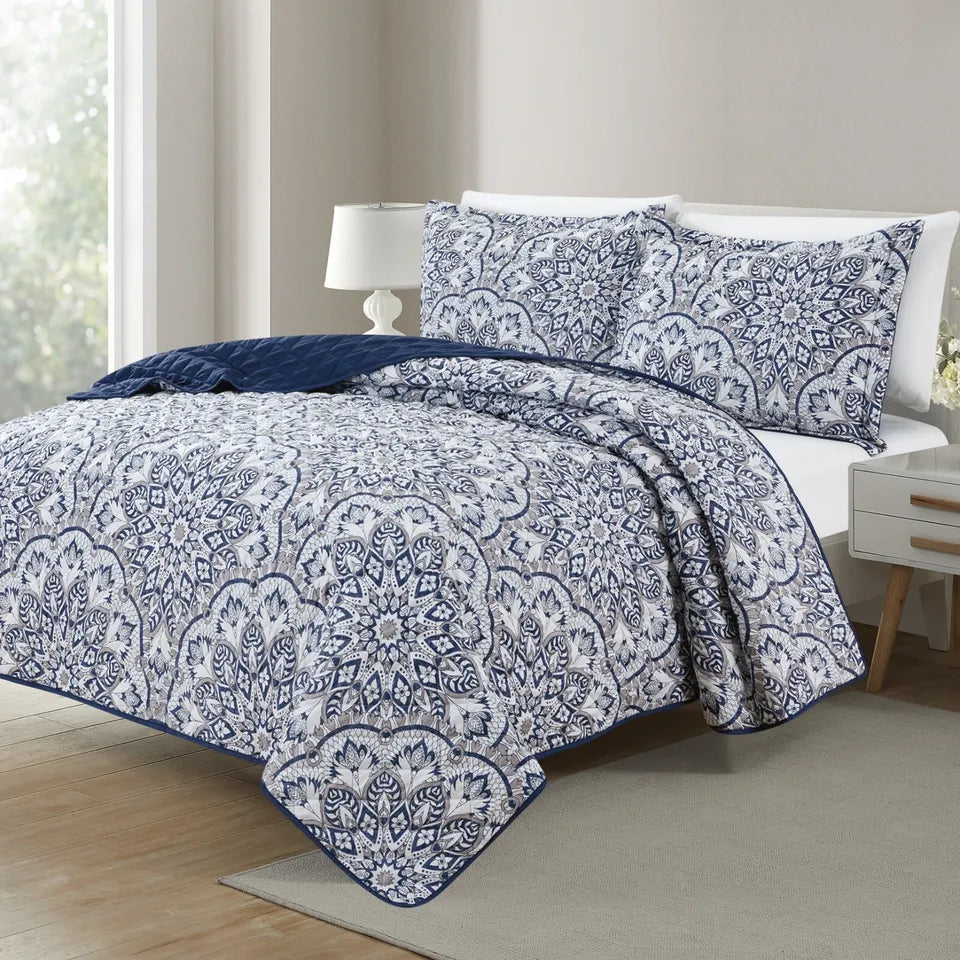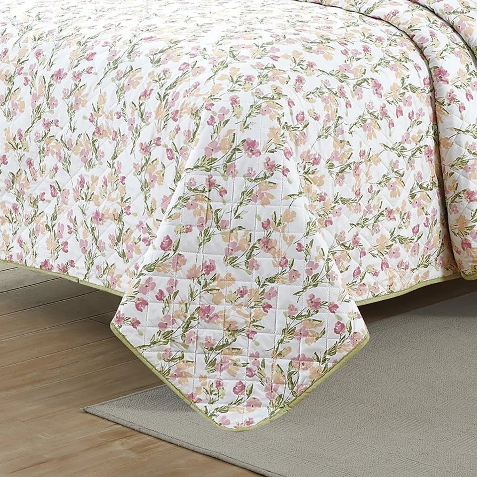 - Bibb Home 3 Piece Printed Reversible Floral Quilt Set:Timeless Elegance: Discover the charm of our quilt for bed with subtle diamond-patterned stitching. Impeccably crafted. it’s a signature detail that sets our bedding apart.