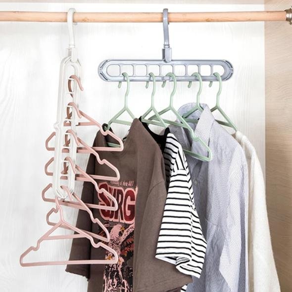 Tired of reorganizing your closet every time it gets messy? We’ve got a solution for you! This Magic Clothes Hanger has9 holes to hang clothesfrom. with ananti-skid design! No more unnecessary time-consuming sliding.Thefoldableand360-degree rotatabledesign makes it possible for you to maximize your storage spacelike never before. becoming quickly a staple in many homes. not only because they help with storage but because they make finding your favorite clothes easier than ever!