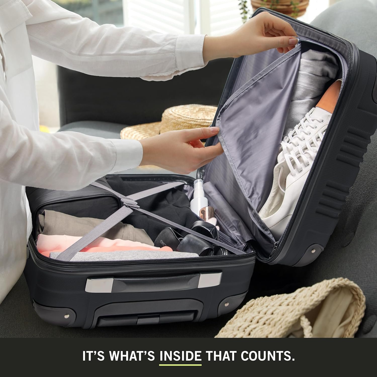 Ultralight and Durable: Made with rigid ABS and PC materials, with molded corner guards for added protection. Tear-resistant polyester interior lining.