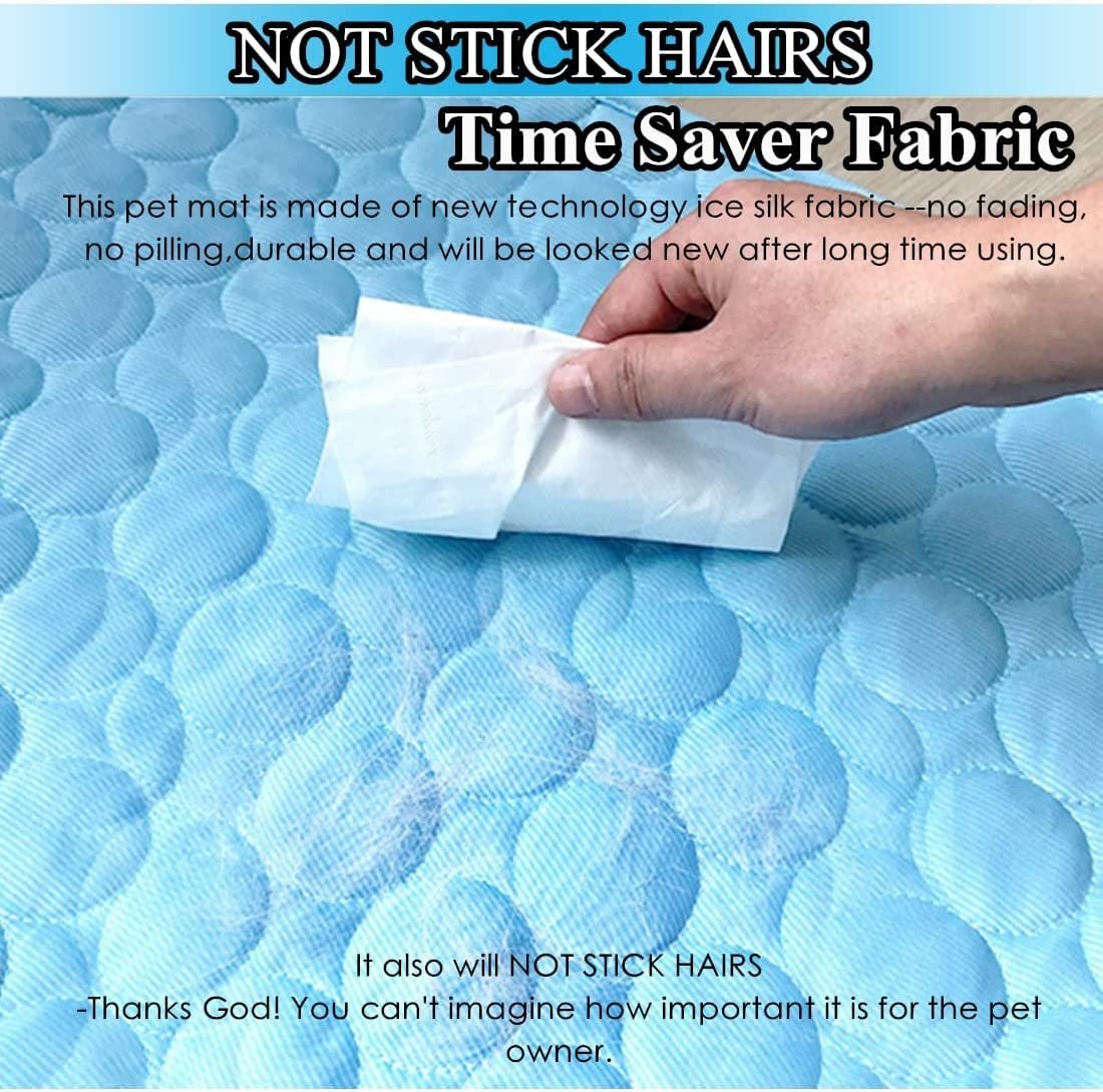 - The dog cooling mat is made of high quality self-cooling fabric. soft. refreshing. comfortable. 100% safe for animals. adults and children. Never worry about your lovely dogs/cats eating the filling in the middle of the pet ice pad by mistake like when you use other type of cooling pad. Let’s enjoy a quick cooling feeling in this hot summer. It can calm our dogs and cats on contact for up to 3 hours. providing a cool place for our dog throughout the year.