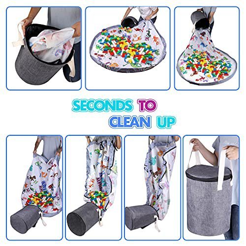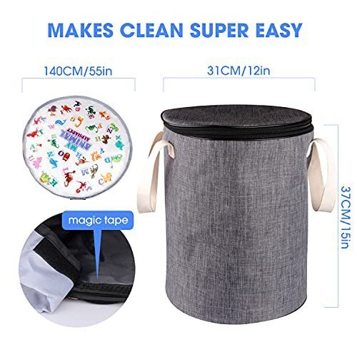 - Creative 2-in-1 Toy Storage Bag – The toy quick storage bag with a zipper can be closed or opened easily. The storage basket measures 15 ”(37cm) tall and 12” (31cm) diameter. can hold about 300 cars or thousands of building block fragments. which attached a durable extra large baby play mats diameter 55″”(140cm) .toy play mats can provide a convenient playing area for your kids.
