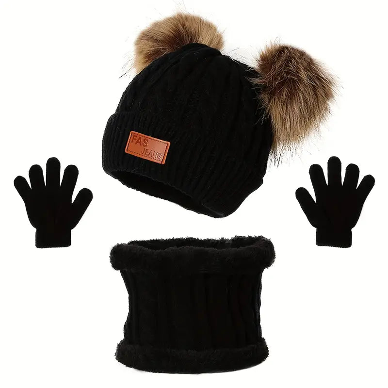Children’s Winter Knitted Wool Lining Warm Hat, Scarf, Glove Set For 2-5 Year Old Boys And Girls