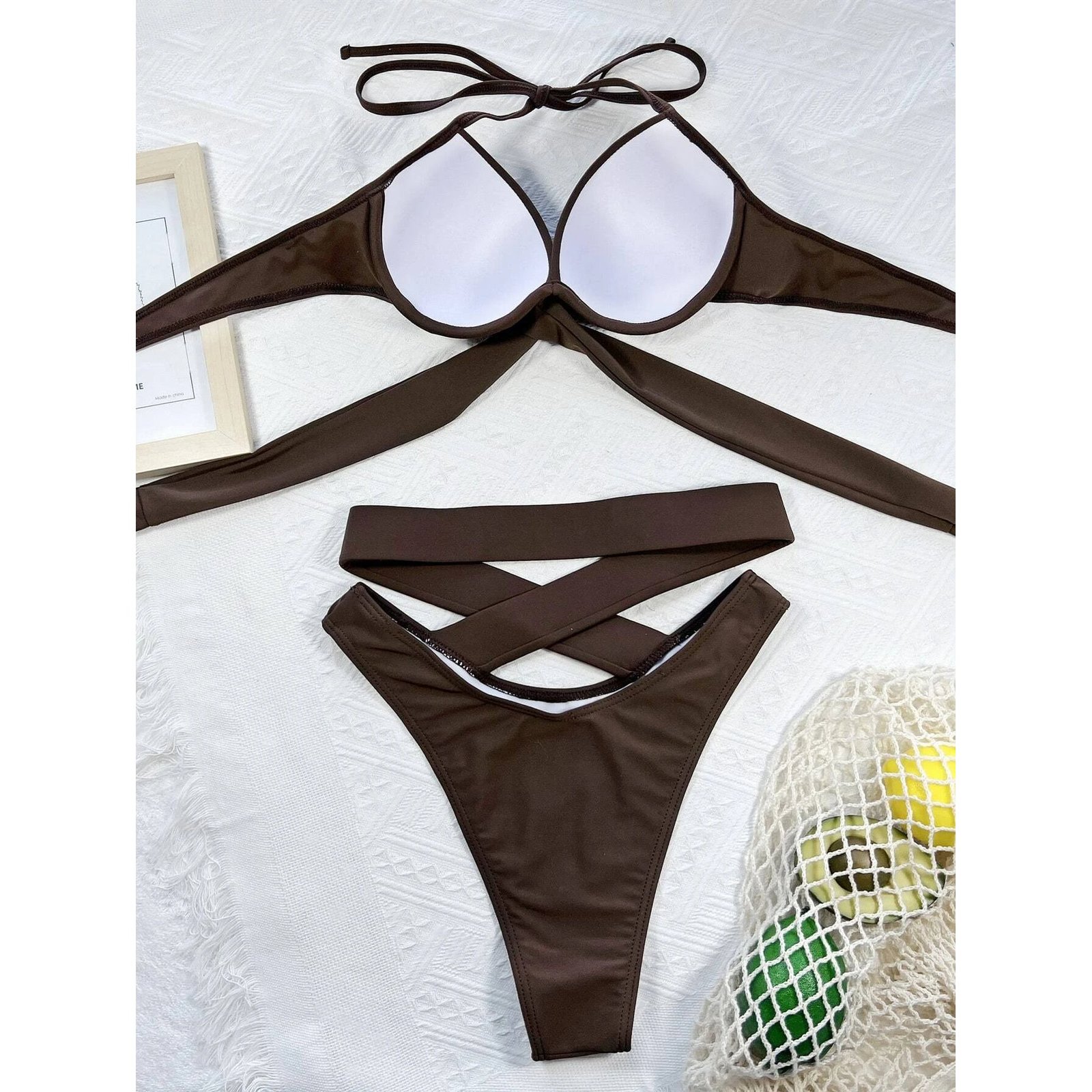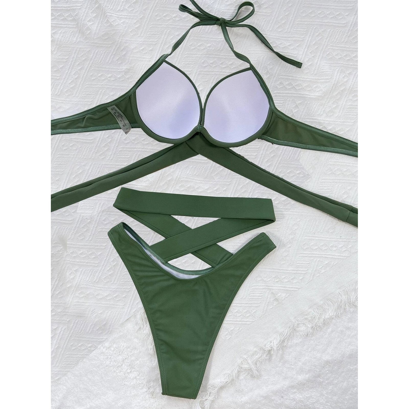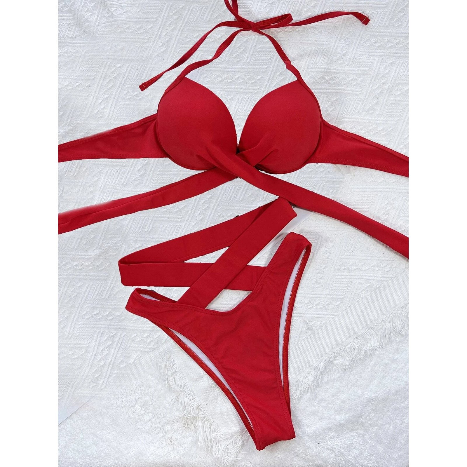 Criss Cross Wrap Push Up Bikini Swimsuit.