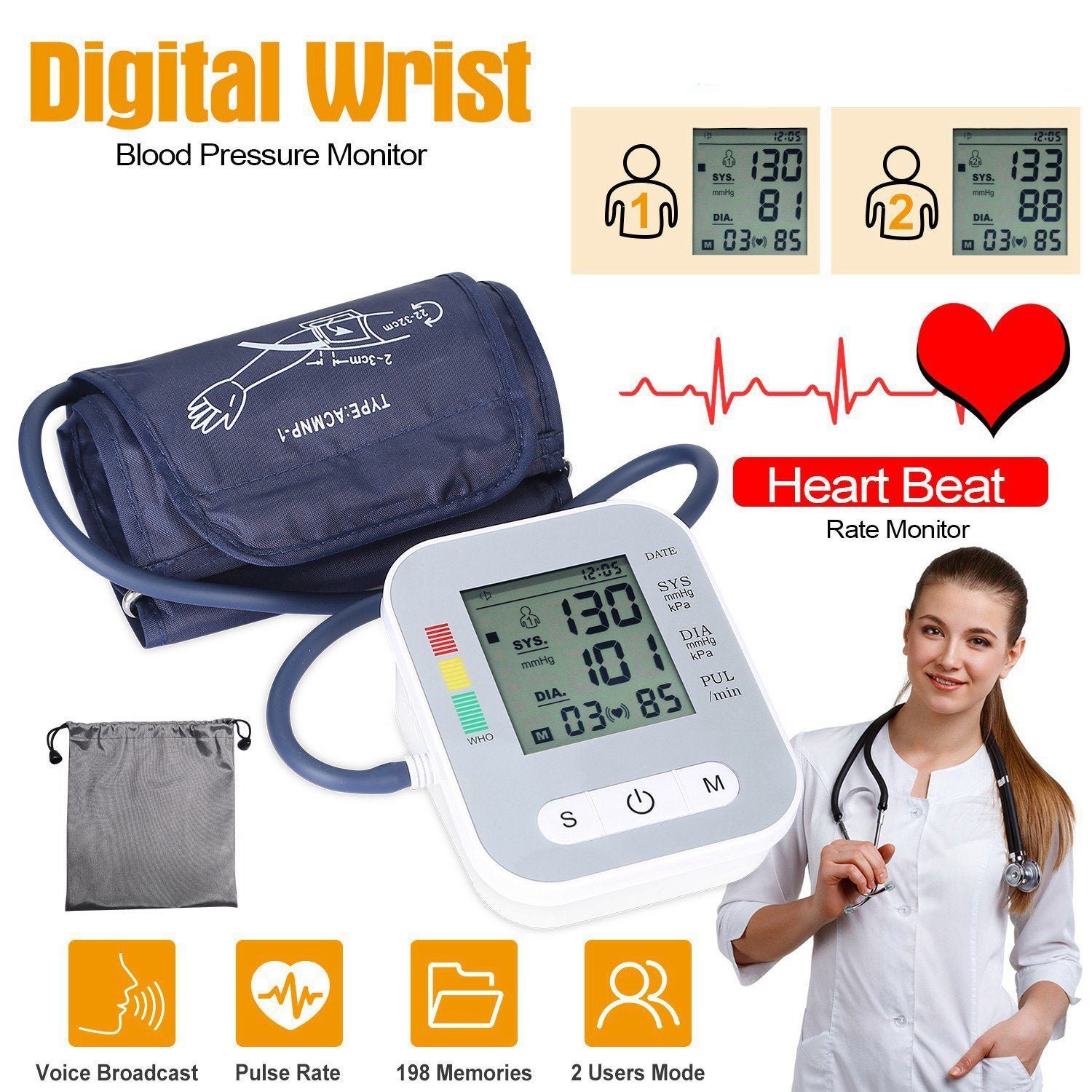 - 2 USERS DATA RECORDING & 198 MEMORIES: Capable of switching between 2 users to store measurements separately and recording total up to 198 measurements (99 readings each user) with date and time for easy blood pressure tracking. the average value of the blood pressure and heart pulse on the latest three time will display when power on. which help to watch over personal health status. Automatic loop recording data and no need manually delete.