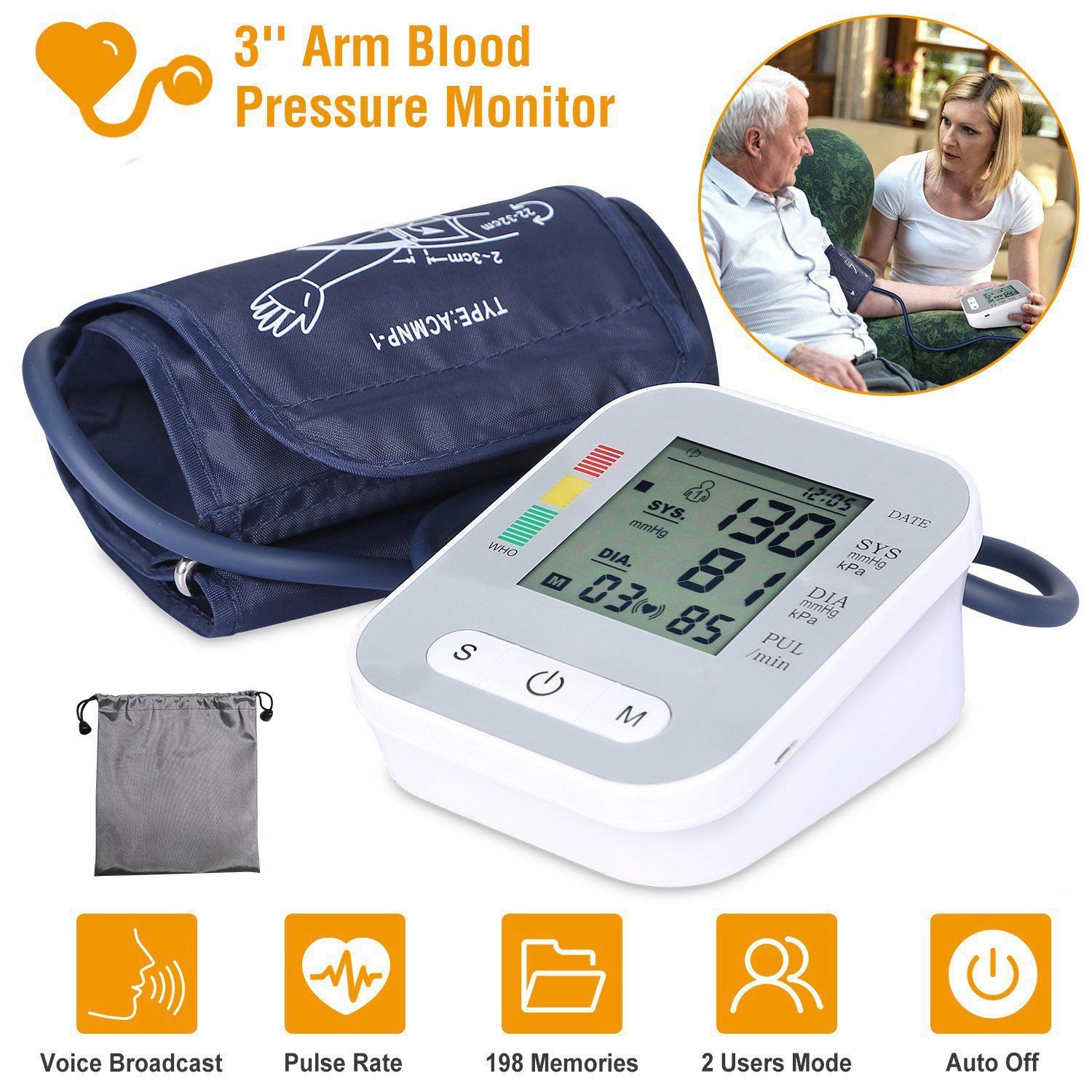 Are you worrying about the healthy status of your parents? Do you want to have a personal doctor to care about your parents’ blood pressure without squeezing into the crowds of people at hospital? Our blood pressure monitor offers an effective solution to regularly measure blood pressure (systolic. diastolic and pulse rate) at home. quick and accurate 3inches LCD screen shows all measurements clearly and broadcast the data. especially easy for the aged to read and listen. Record totally up to198 measurements with date and time. the average value of blood pressure and heart pulse of the last three times. for easy blood pressure tracking. Moreover. the comfortable armband fits for Wrist circumference from 8.66 to 12.6inches. easy to wear by single-hand. Portable storage bag design enables it to accompany with you at home or on travel.