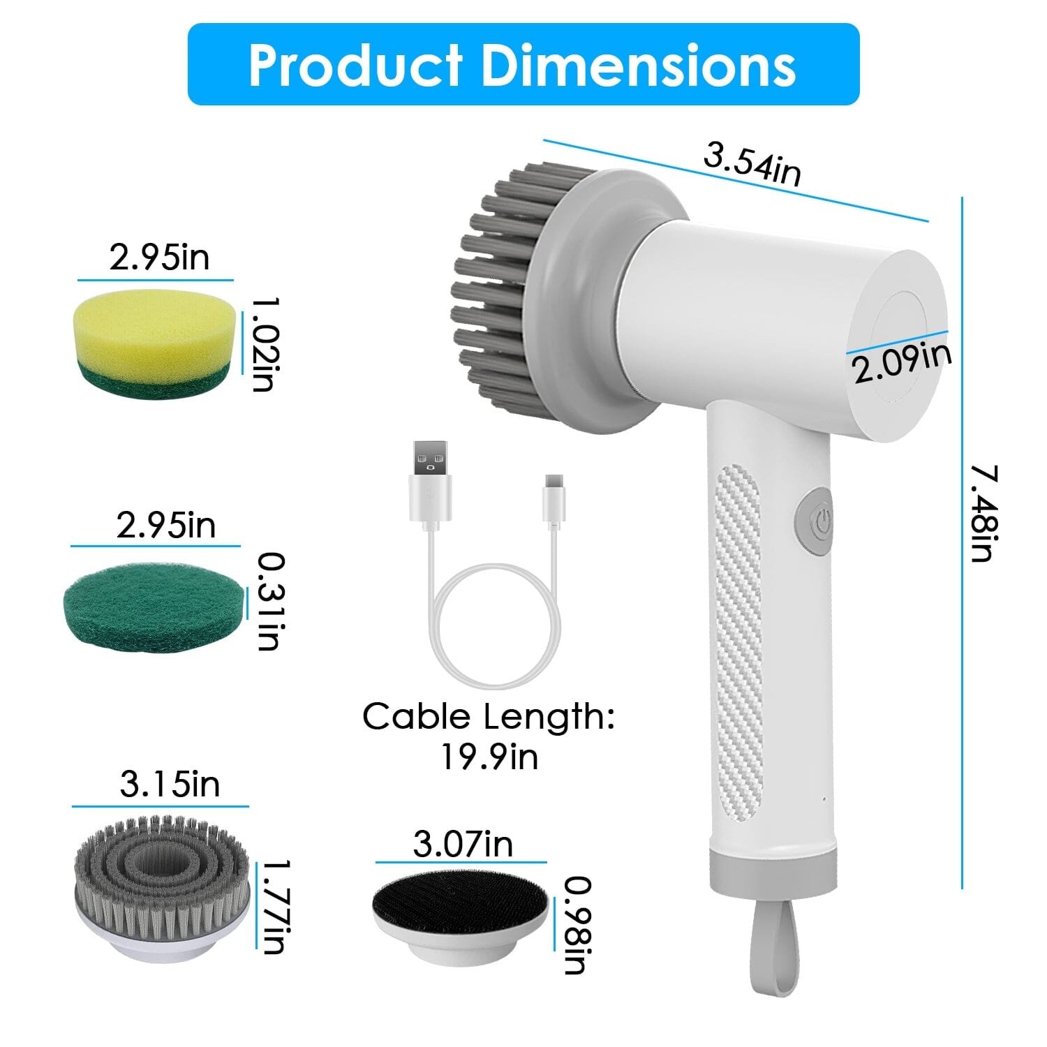 Are you feeling tired. time-consuming and laborious after doing cleaning works? Featured with 2 efficient working speeds. our powerful electric spin scrubber helps you do the tough scrubbing for you. which allows you to clean the stubborn stains more effectively and makes home cleaning much easier. Features 4 different types of brush head(flat brush/scouring pad/sponge/fastener fixation brush head). fully meets your diverse cleaning needs. Come with a Type-C USB cable. can be used for up to 45 minutes after 1.5 hours of fast charging. The compact size and portable strap also allow you to carry it anywhere you go to clean surfaces without getting tired.