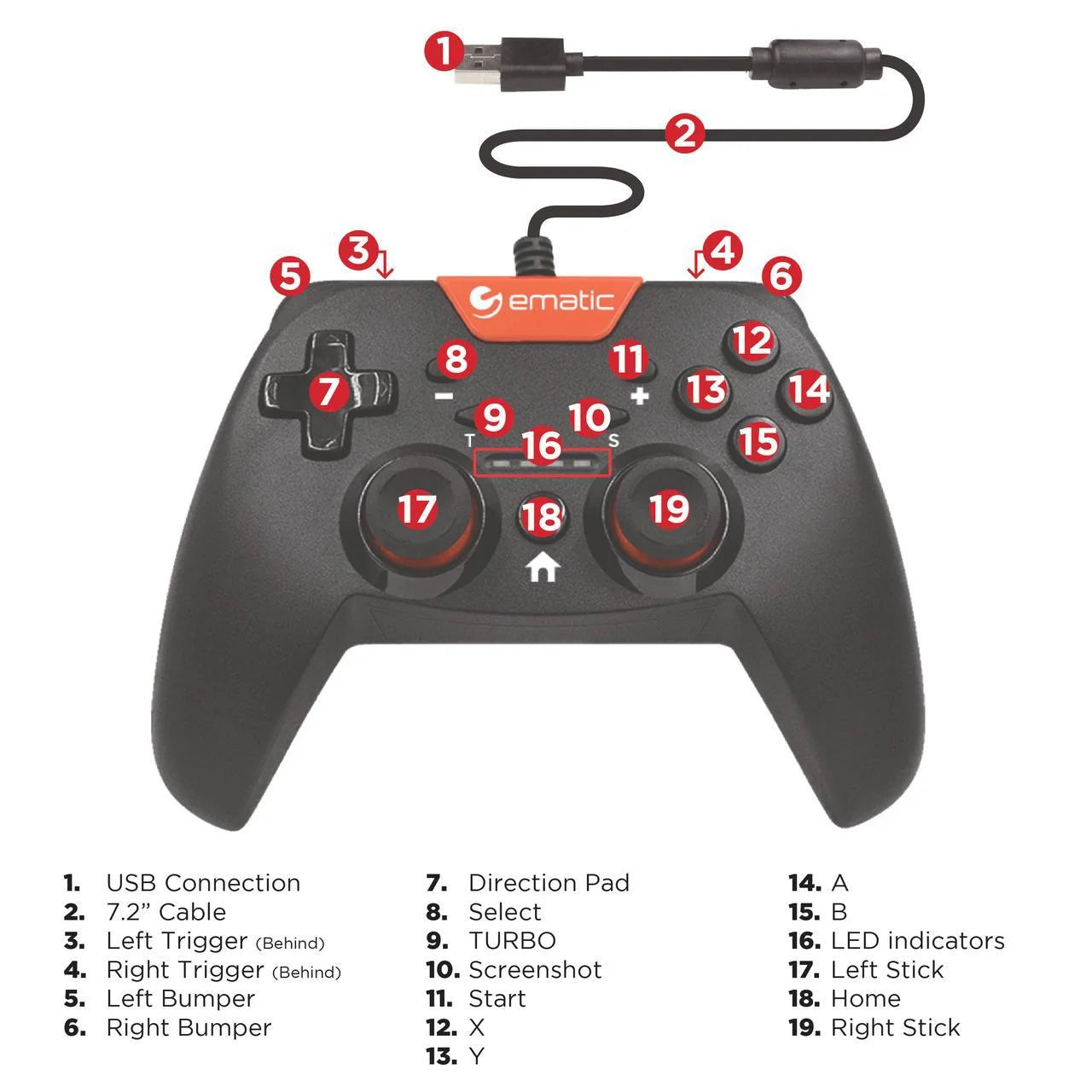 Ematic NSWC012W Nintendo Switch Wired Controller (Black) – New