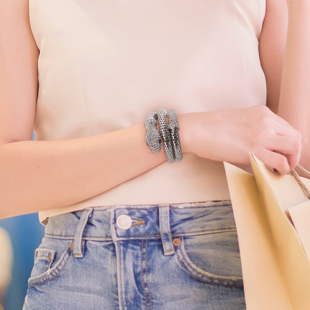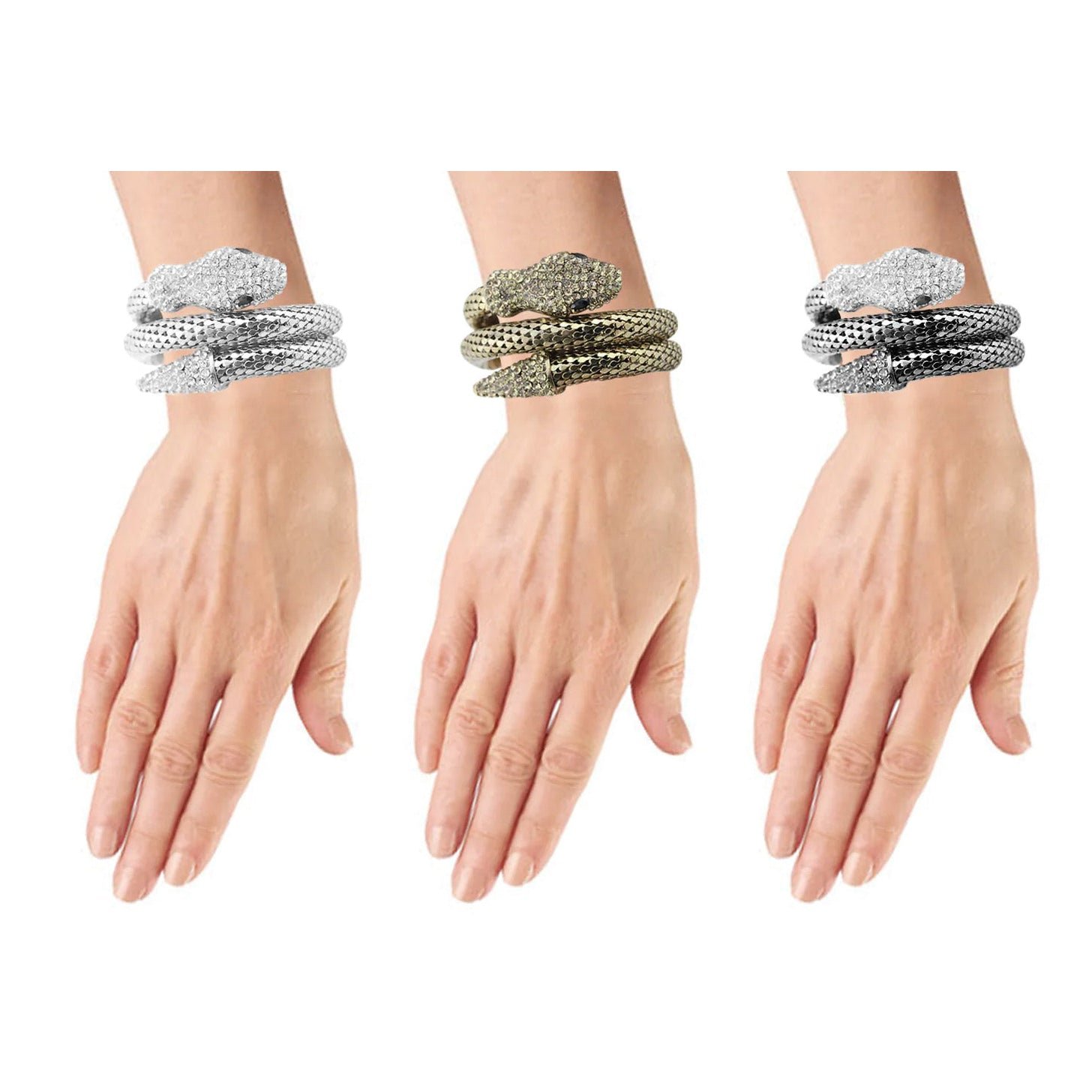 - Ultra-slinky snake bangle wraps her coils seductively around your wrist