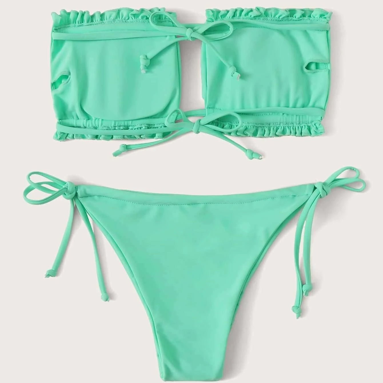 Frill Trim Bandeau Tie Side Bikini Swimsuit