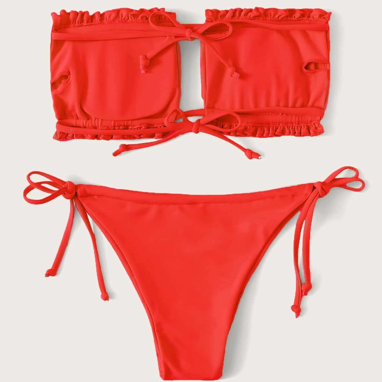 30 arviota tuotteelle Frill Trim Bandeau Tie Side Bikini Swimsuit