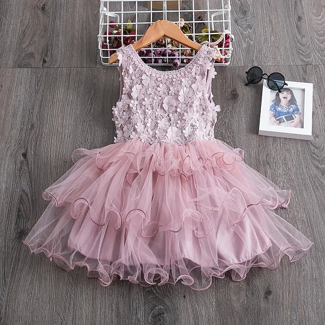 Kids Little Girls’ Dress Flower Party Wedding Ruffle Tutu Mesh Embroidered Knee-length Sleeveless Elegant Princess Dresses.