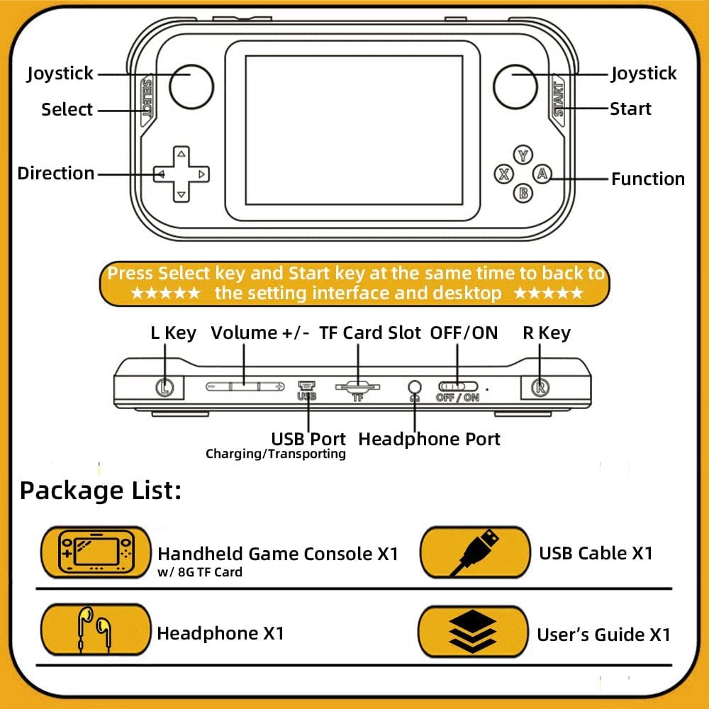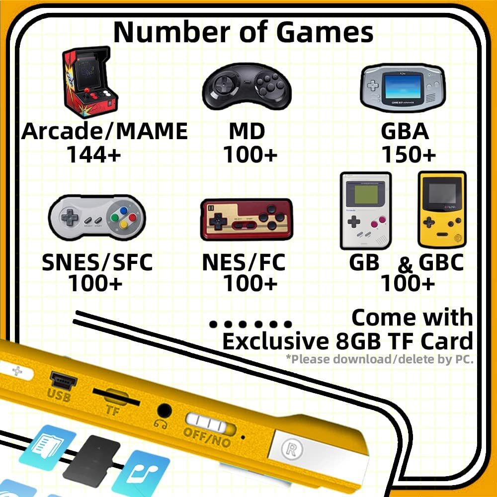 - Storage 8G Micro SD Card (6.8G available full with games).