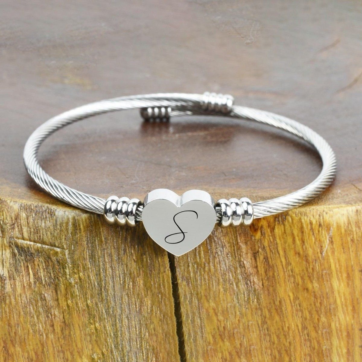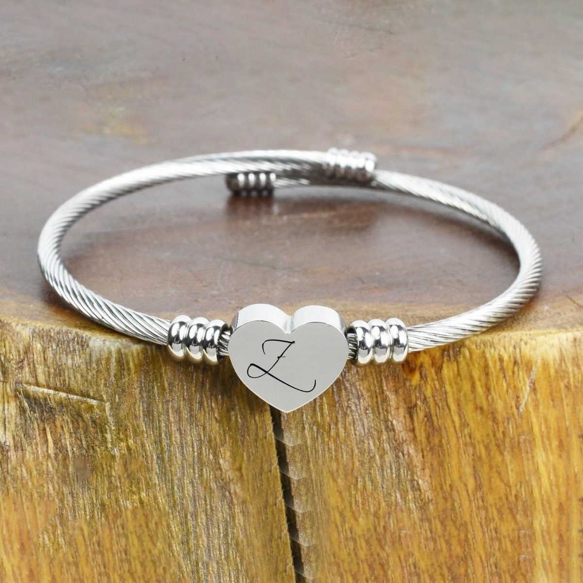 - Heart cable initial bracelet