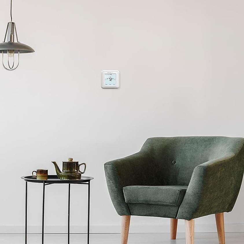 Keep your home at just the right temperature with the Honeywell Home T5 Touchscreen 7-Day Programmable Thermostat. Choose battery-powered or hard-wired operation. Your settings stay safe with the permanent day and time backup. The advanced design provides maximum comfort by sensing whether your home needs heating or cooling. It is packed with features and options yet easy to program. with a contemporary design and an extra-large. backlit touchscreen display.