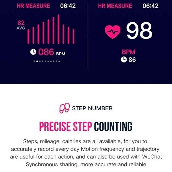 This smartwatch can perform heart rate checks. blood oxygen. blood pressure. and measurements. Heart rate monitoring throughout the day (displayed in bars. highest recorded. lowest heart rate). Support long presses the wristband remote control phone to take pictures.In do not disturb mode. raise your hand to the bright screen. time format settings. restore factory. long press to reject incoming calls. three clock interface selection. music control (support previous. next. play/pause). weather display. apple health.