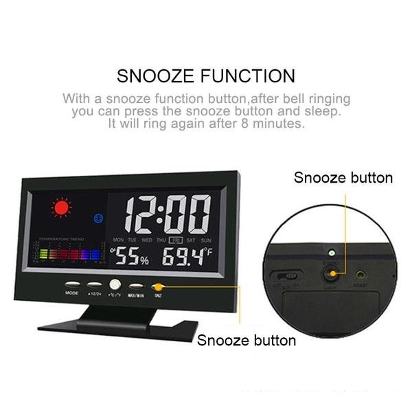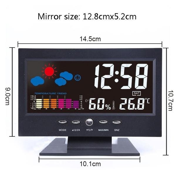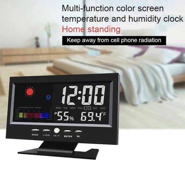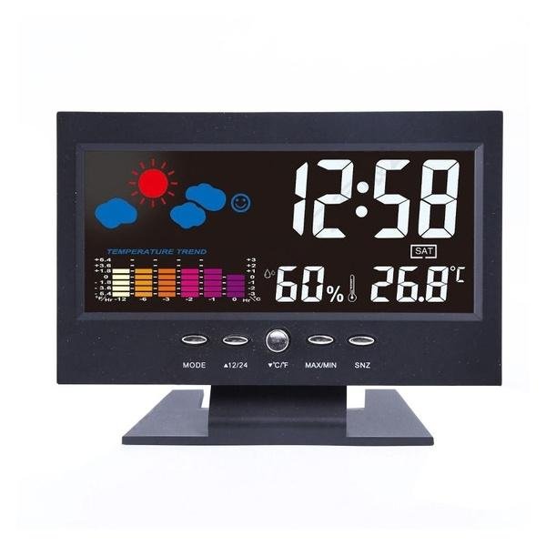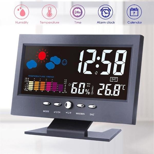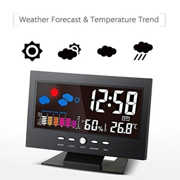 LCD Color Screen Digital Backlight Snooze Alarm Clock Weather Forecast Station Indoor Temperature Humidity Time Date Display Clock with Alarm for Home. Office. Room. Table. Desktop