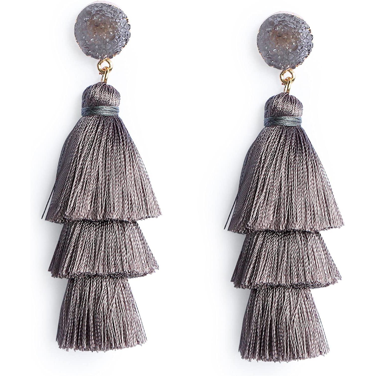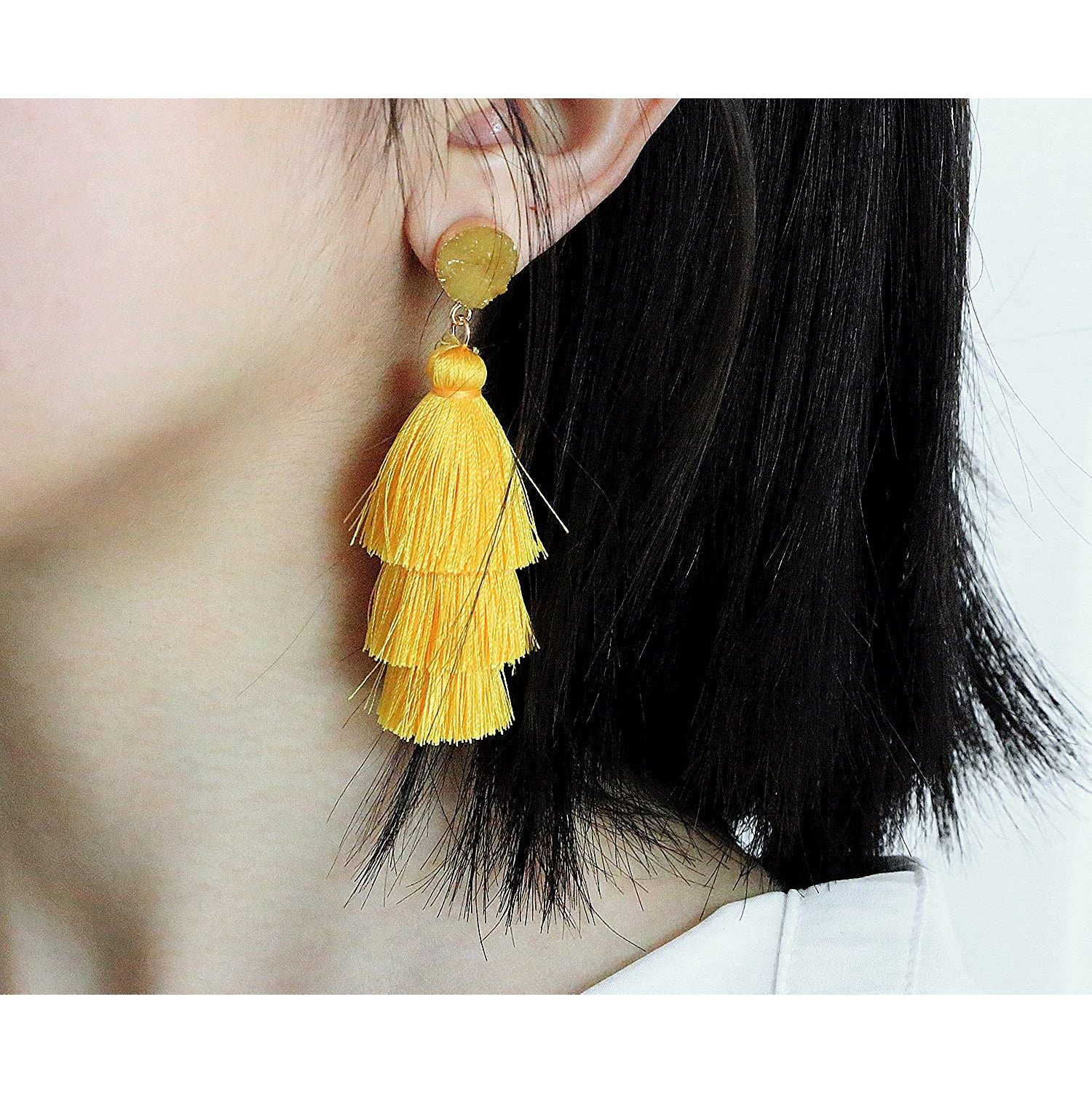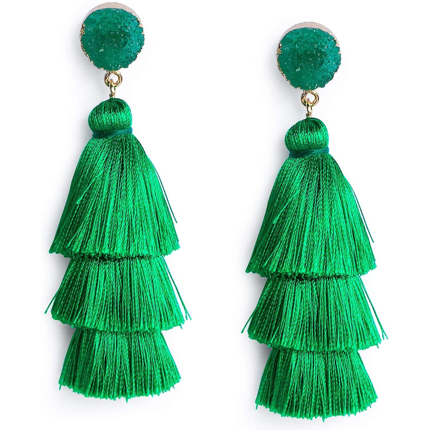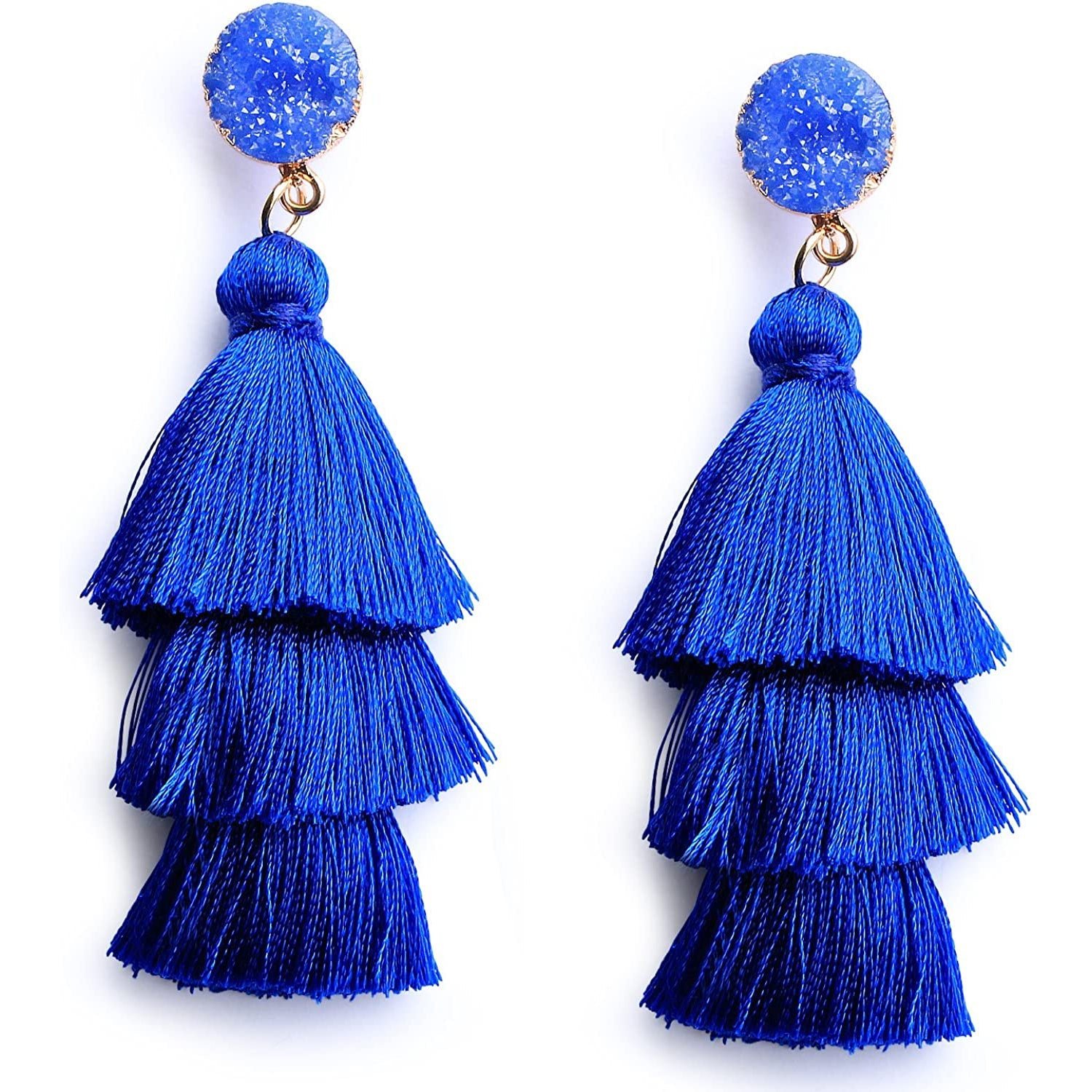 Me&Hz Colorful Layered Tassel Earrings Bohemian Tiered Tassel Druzy Stud Dangle Drop Earrings for Women Teen Girls Birthday Christmas Valentines Day Gift.