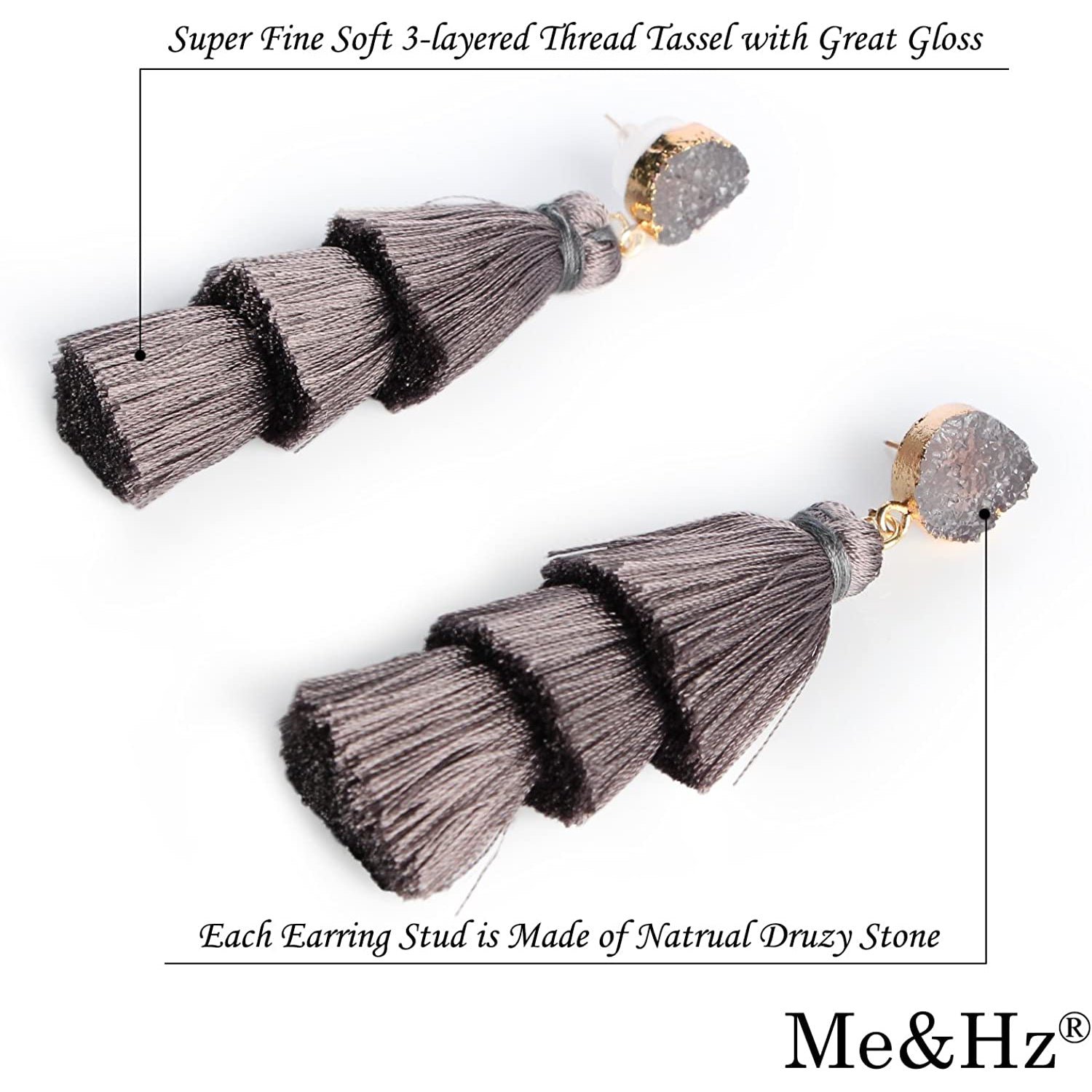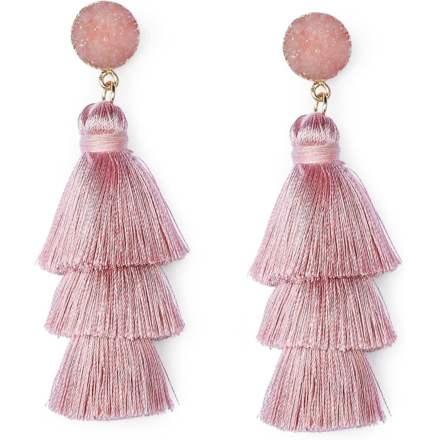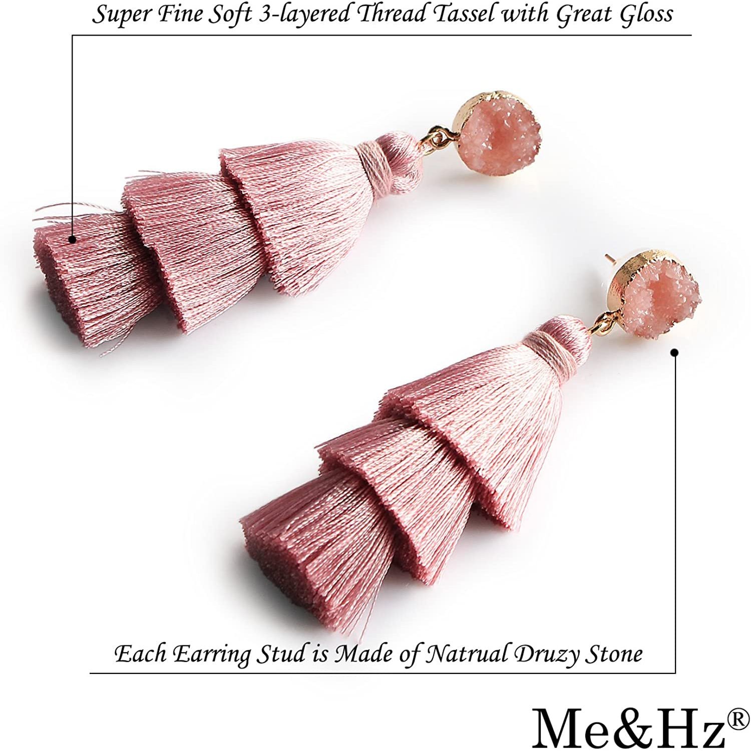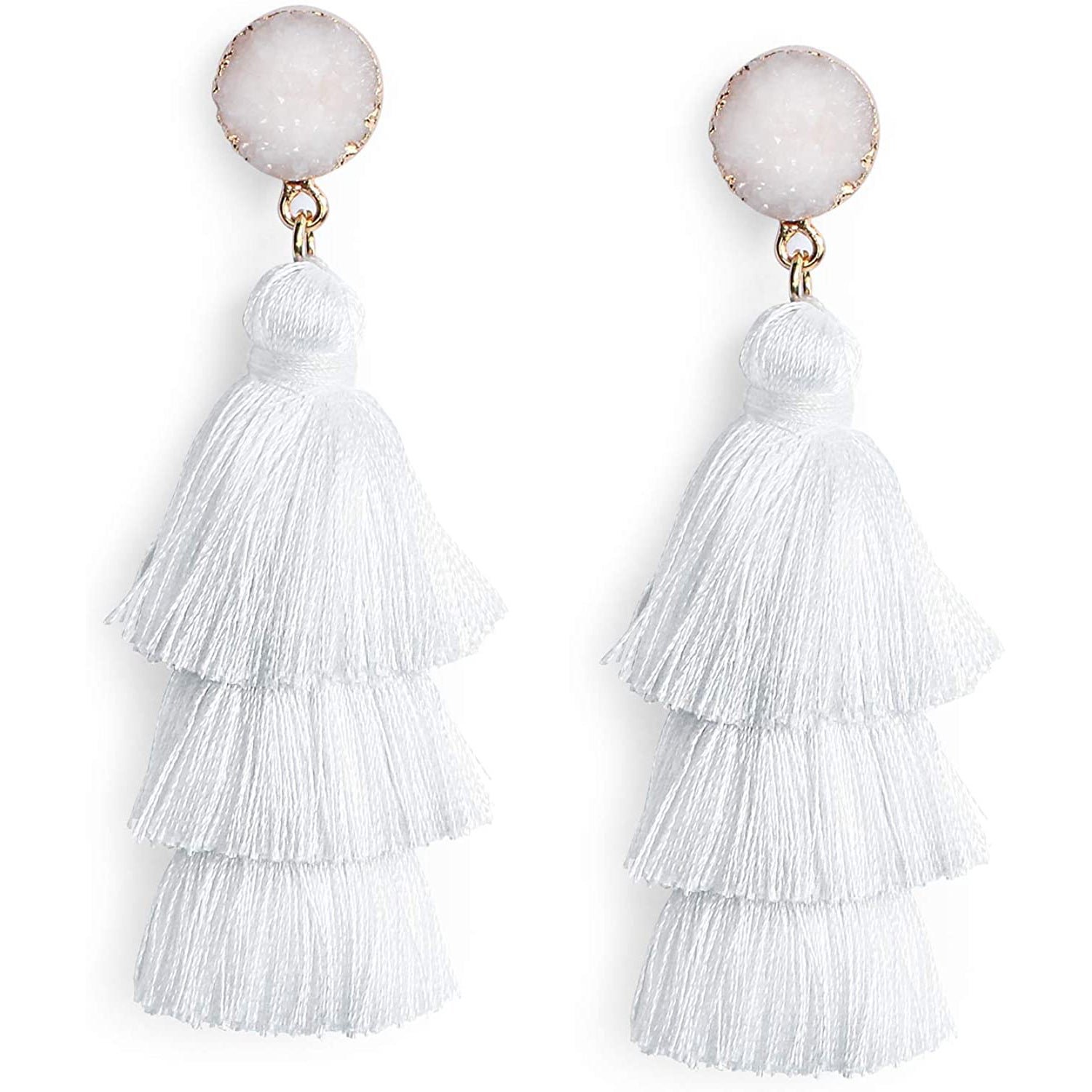 Me&Hz Colorful Layered Tassel Earrings Bohemian Tiered Tassel Druzy Stud Dangle Drop Earrings for Women Teen Girls Birthday Christmas Valentines Day Gift.