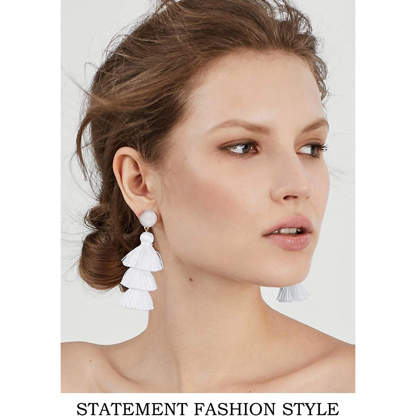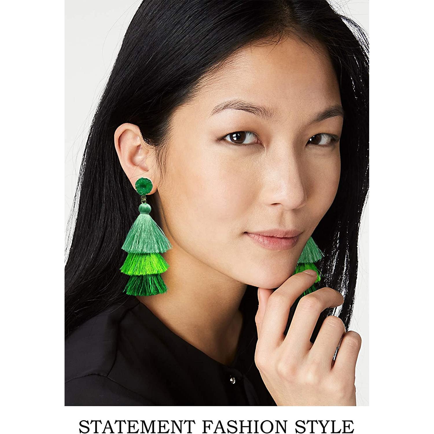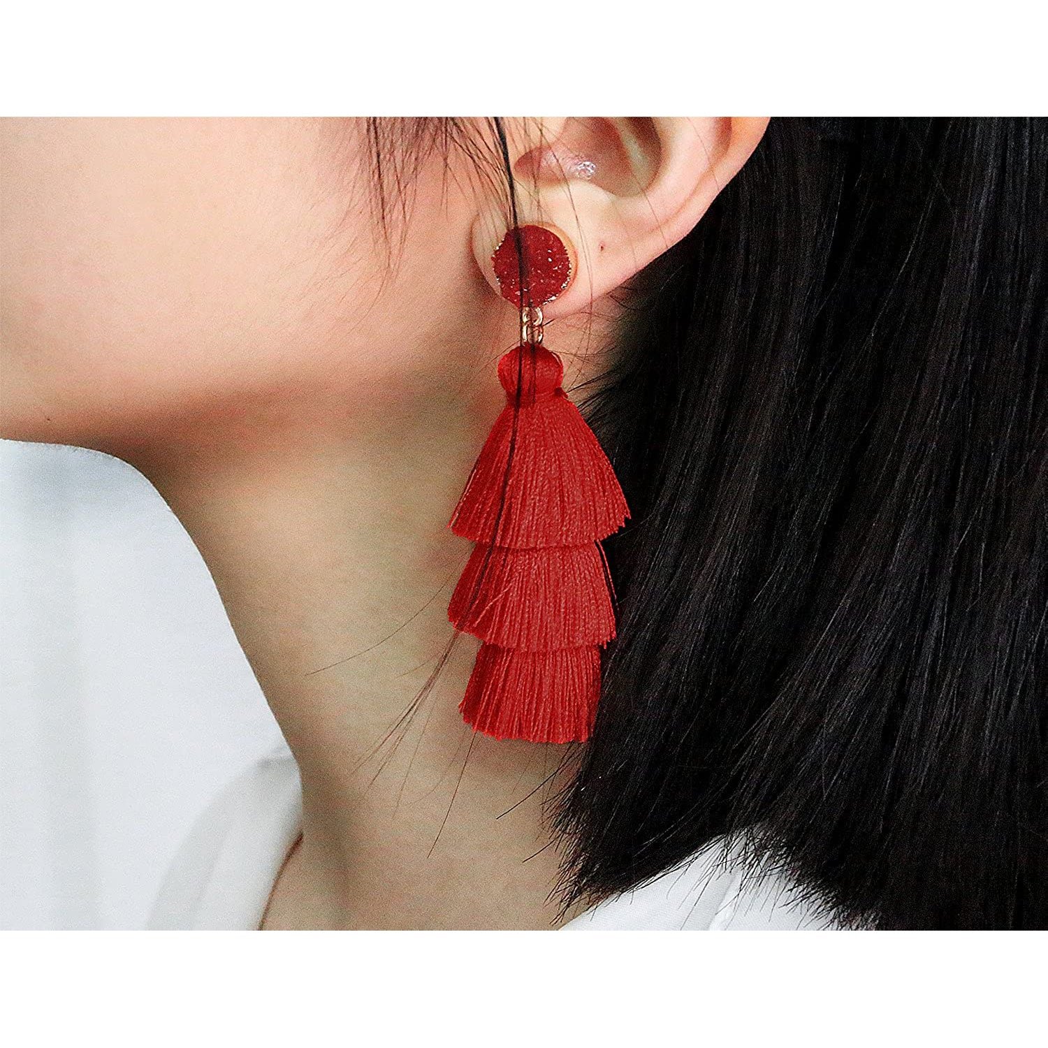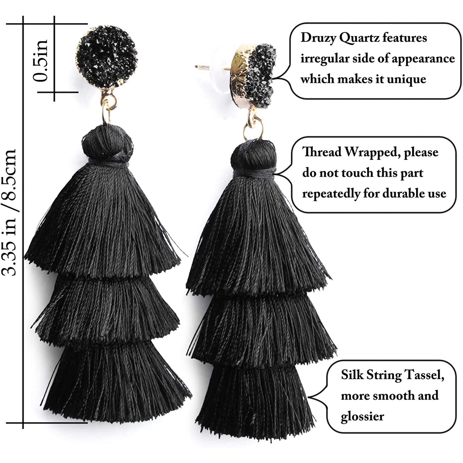 • This tassel drop dangle earring is about 3.35in / 8.5cm length. cute and elegant. It weights only about 0.4oz for a pair earring. lightweight and comfortable for wearing