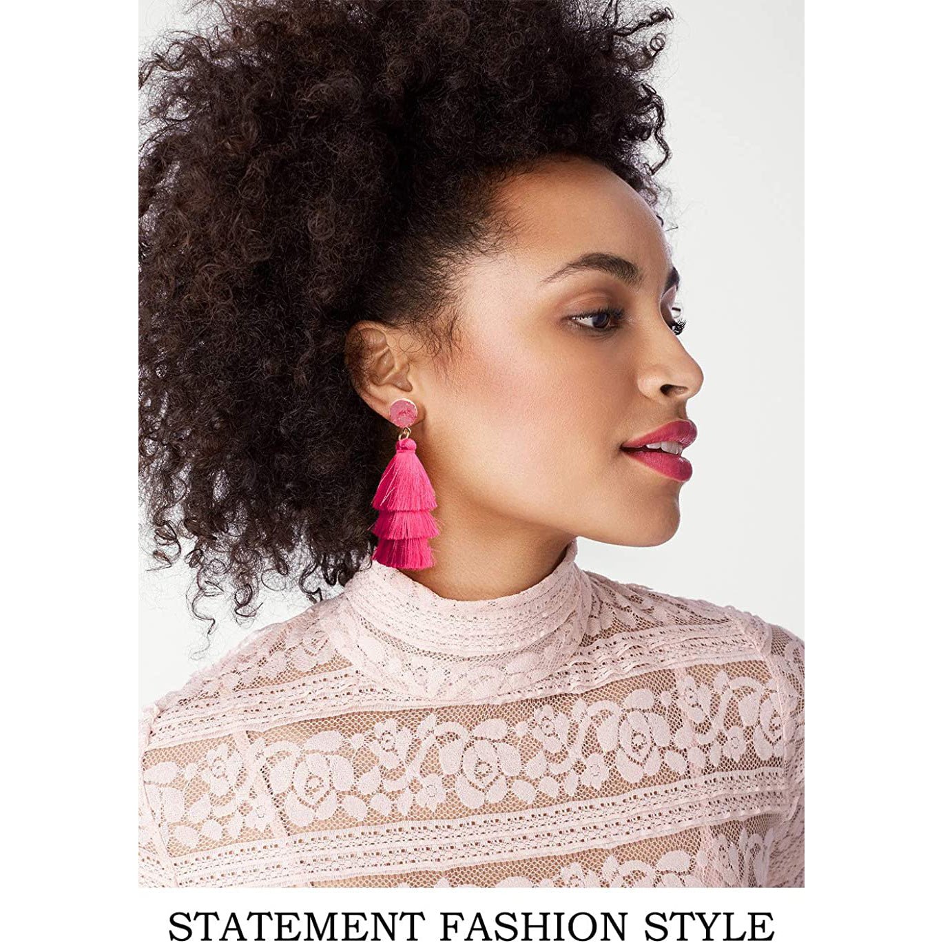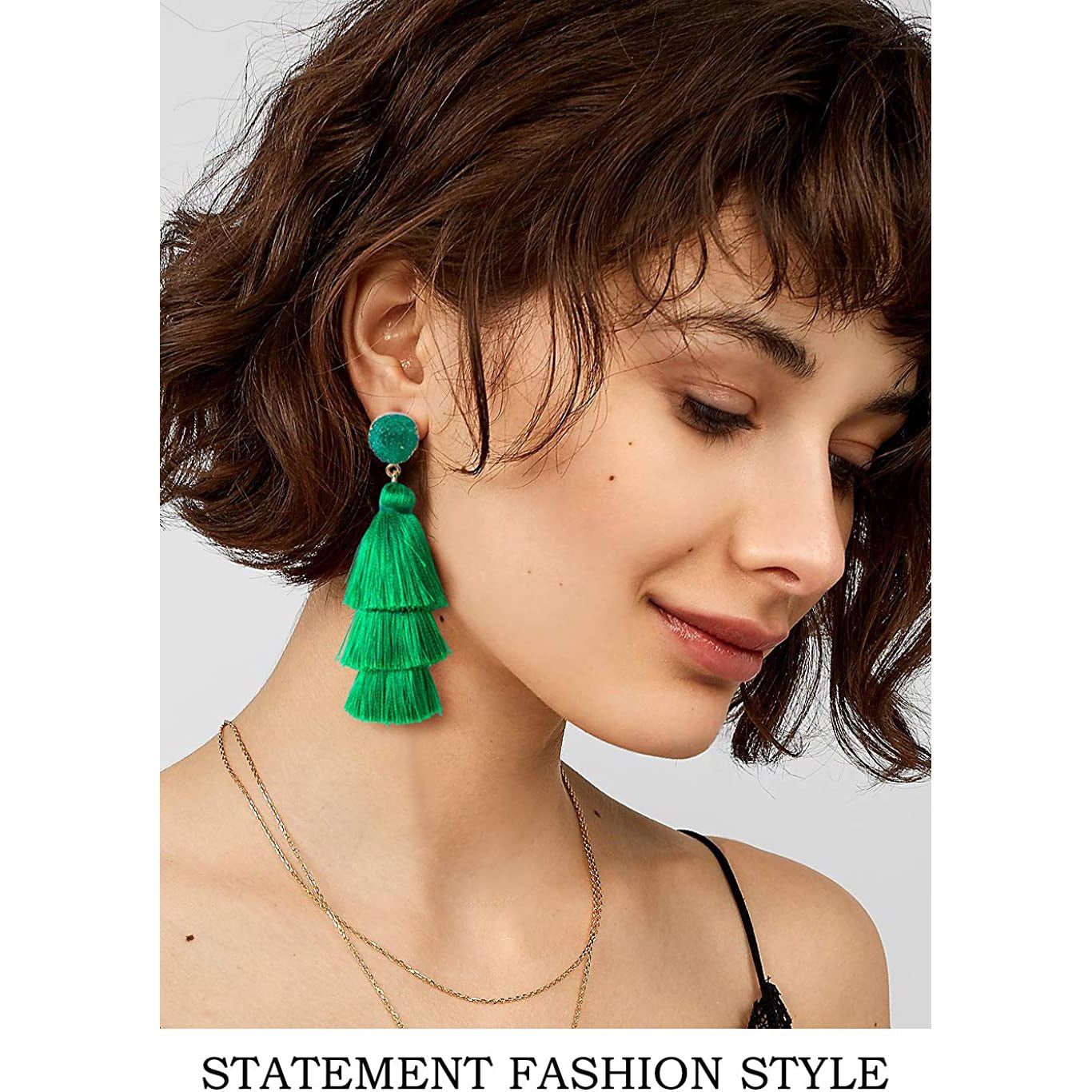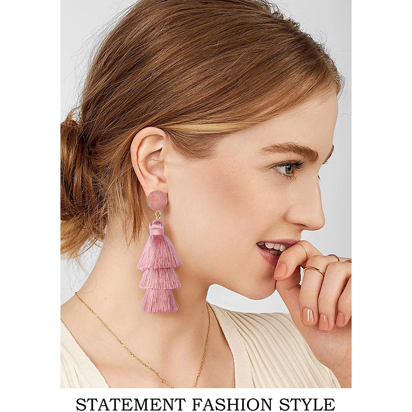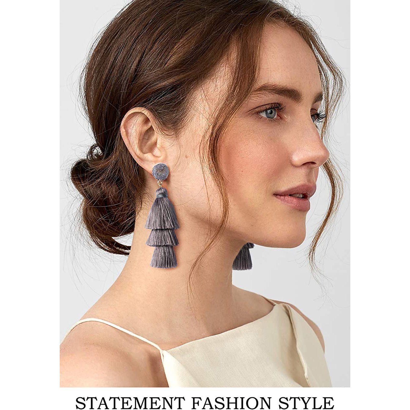 • This tassel drop dangle earring is about 3.35in / 8.5cm length. cute and elegant. It weights only about 0.4oz for a pair earring. lightweight and comfortable for wearing