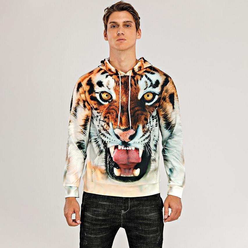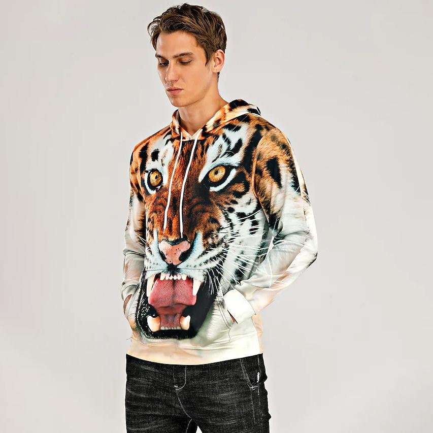 Men’s Plus Size Hoodie Animal Patterned 3D Tiger Hooded Causal Holiday 3D Print Basic Hoodies Sweatshirts.