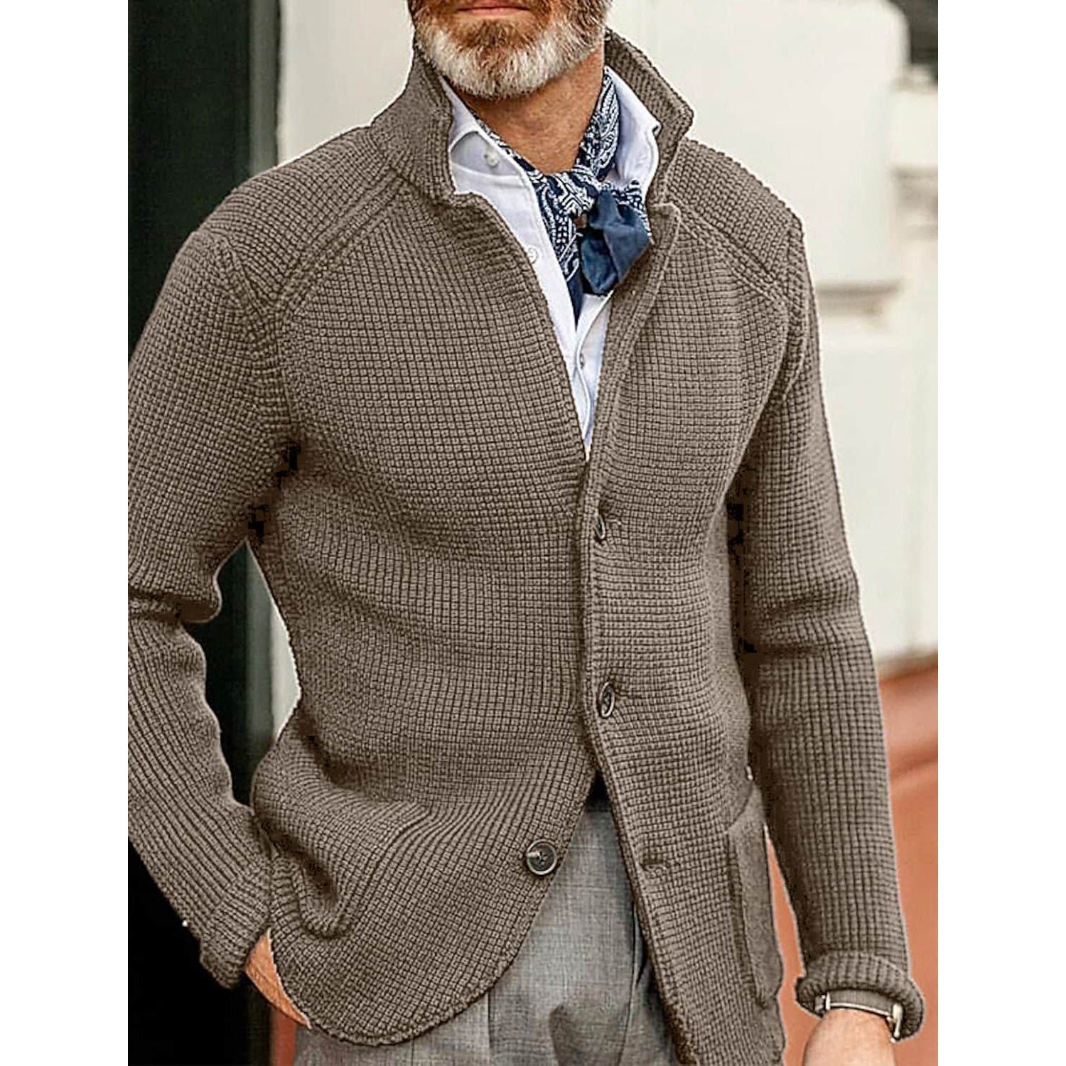 Men’s Sweater Cardigan Sweater Blazer Waffle Knit Cropped Knitted Solid Color Stand Collar Basic Stylish Outdoor Daily Clothing Apparel Fall Winter Long Sleeve / Long Sleeve.