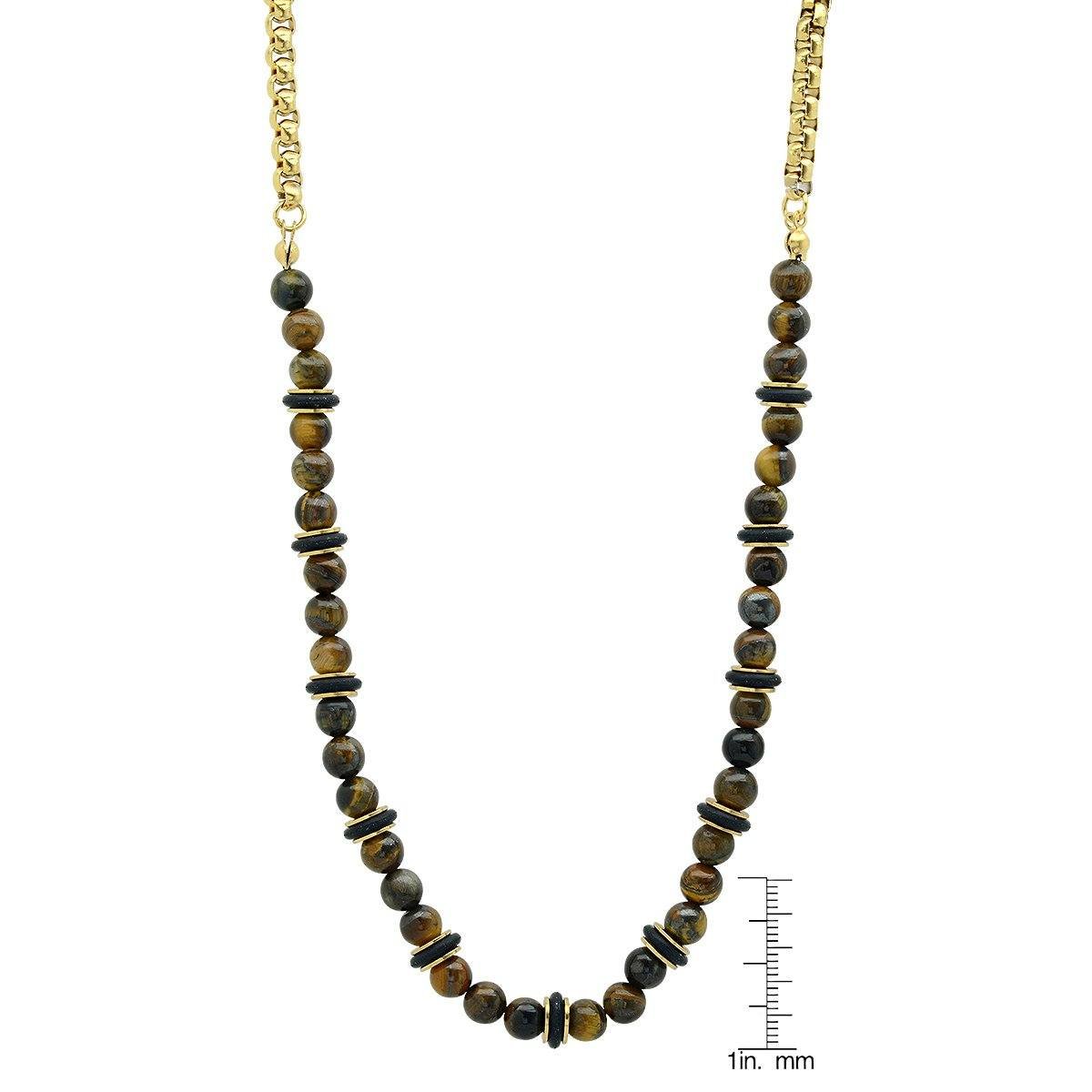 30 arviota tuotteelle Men’s Tiger Eye, Black Rubber and 18k Gold Plated Box Chain Necklace