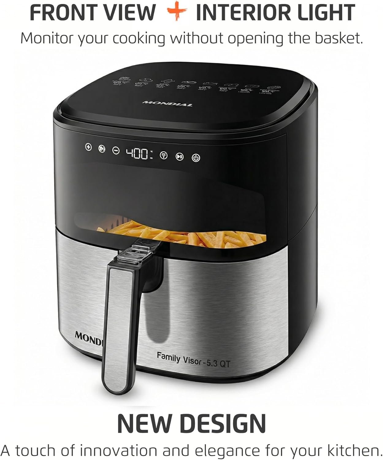 【HIGH PERFORMANCE】 Equipped with 1800W of power, the Mondial Visor Inox digital air fryer guarantees fast and even cooking for crispy and delicious meals with less oil.
