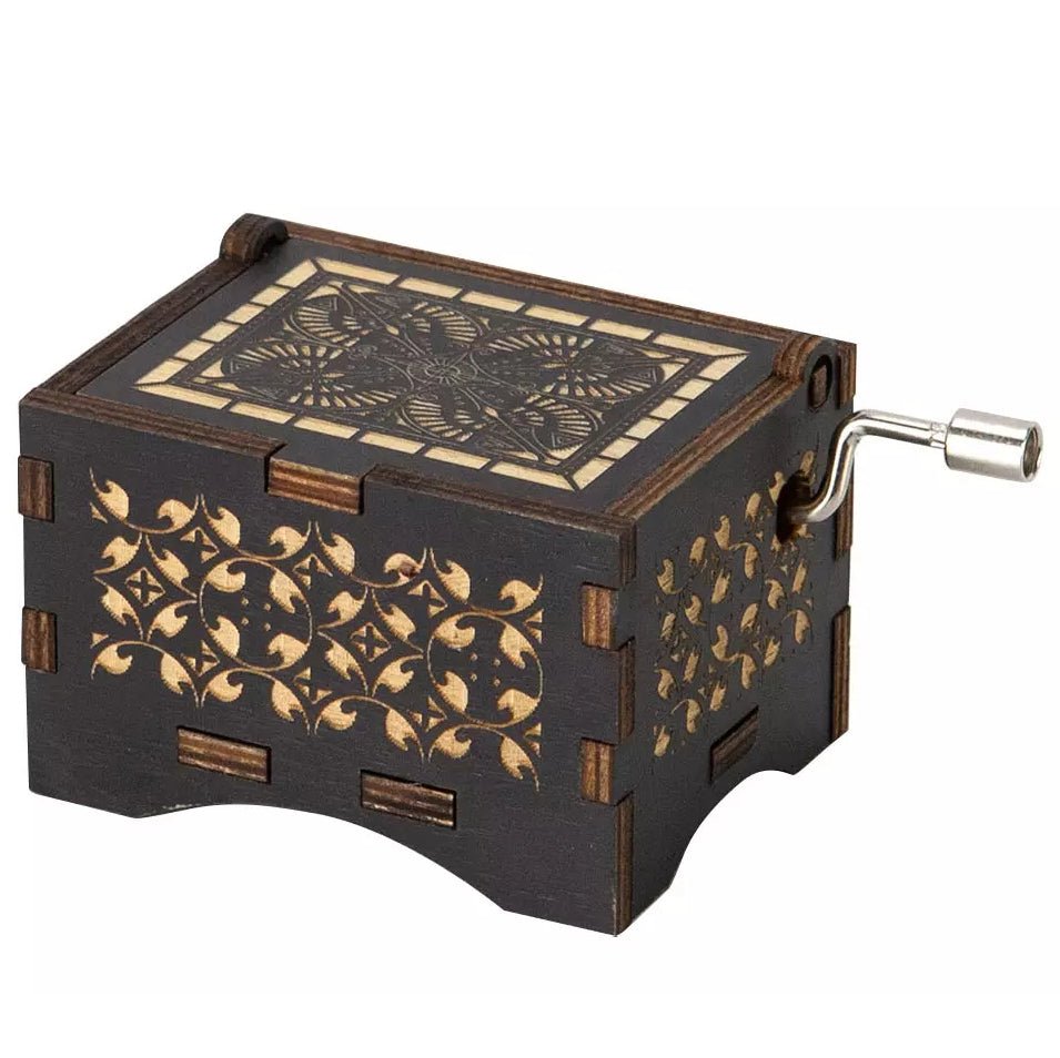 Hand Crank Vintage Wood Carved Sunshine Musical Box