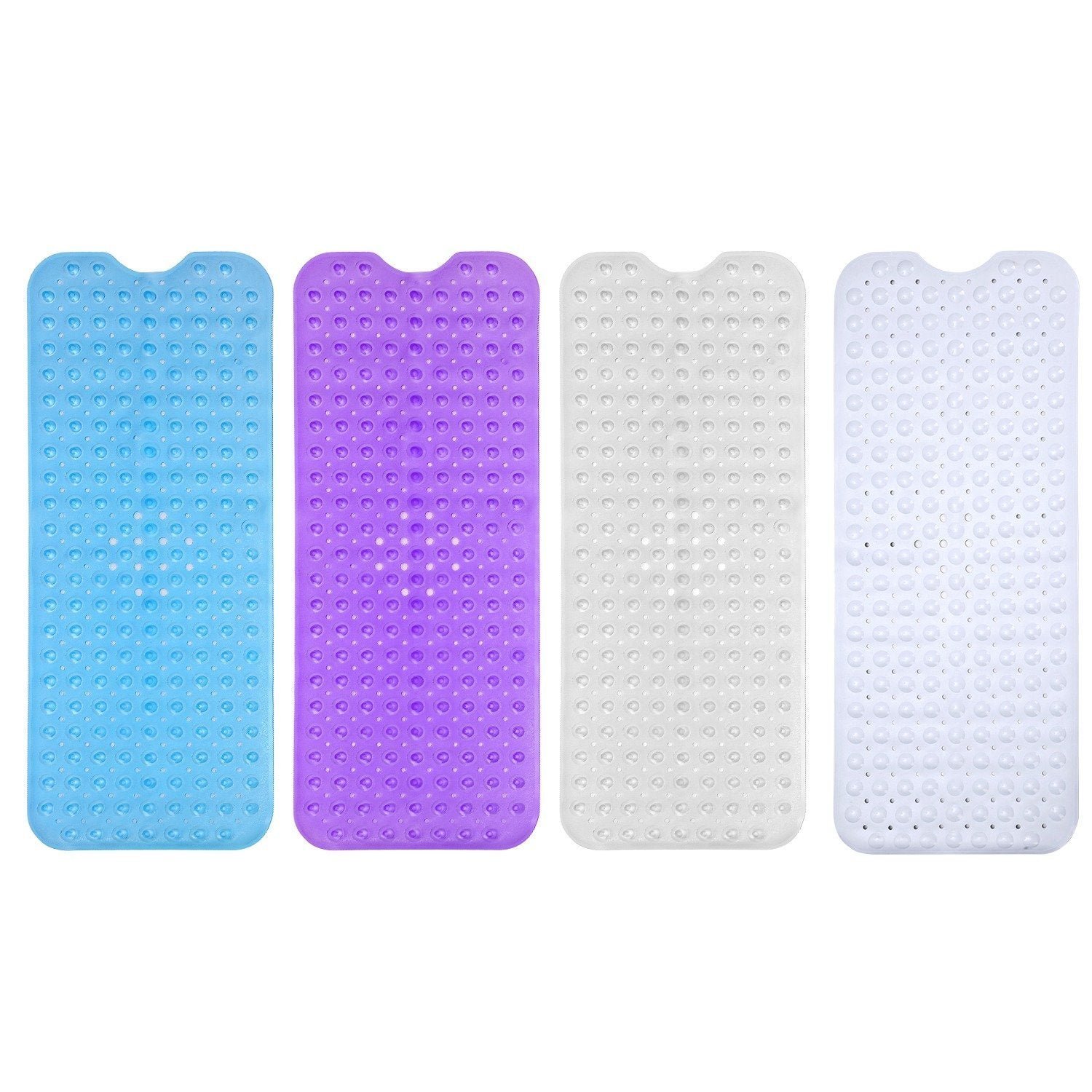 Are you looking for a safe and comfortable bath mat? Our anti-slip mat is made of BPA-free. anti-bacterial PVC plastic. soft and durable. There are 200 suction cups on the bottom that can attach to the clean and wet floor firmly. and the drainage holes allow free water circulation. The pebbles design and the anti-slip texture give the best slip-resistant effect and a comfortable massage experience to promote blood circulation. Also. the bath mat is machine-washable to facilitate hassle-free maintenance without color fading or deforming. 4 beautiful colors give your more choices and bring more brightness to your home. Get one non-slip bath mat. bring more security to your family.