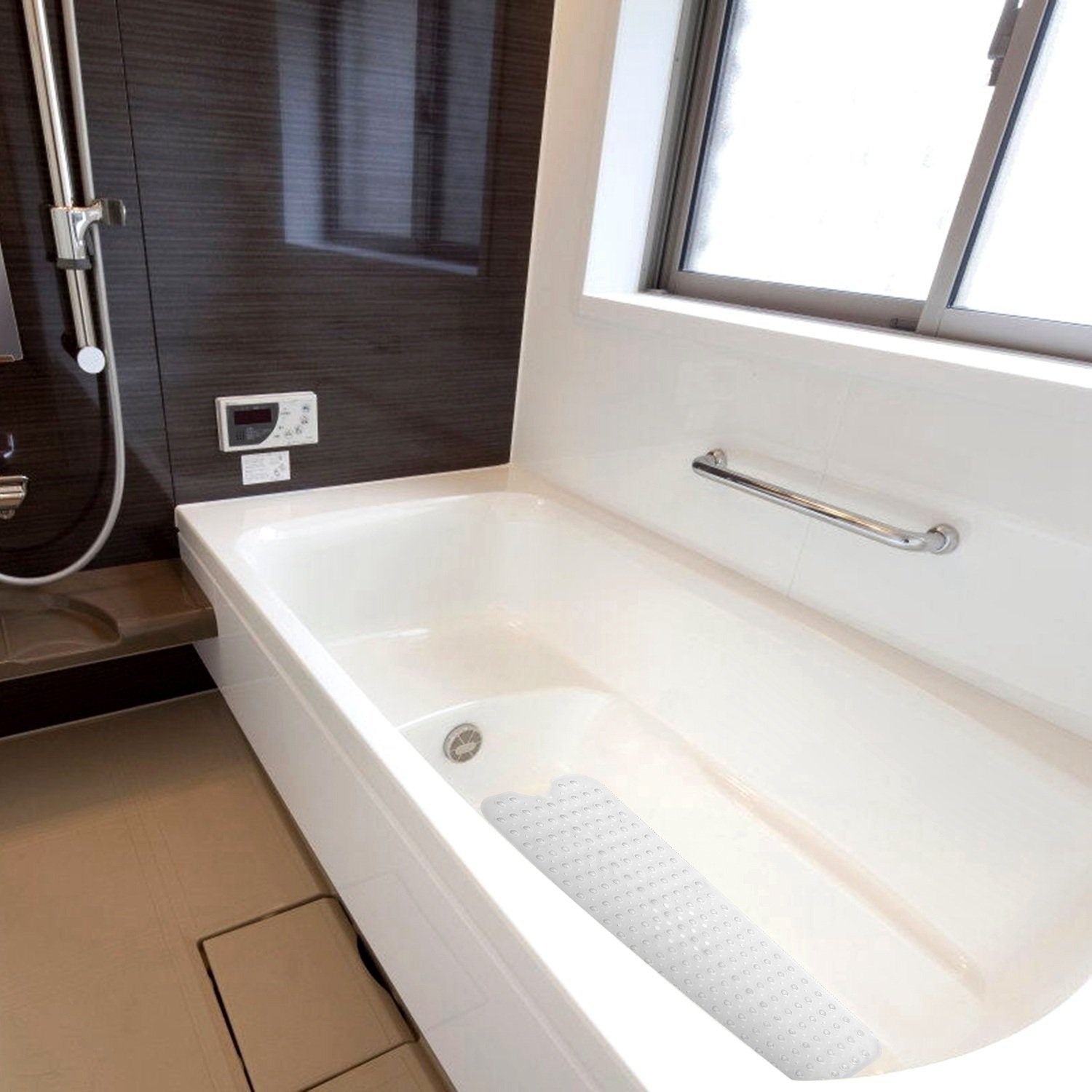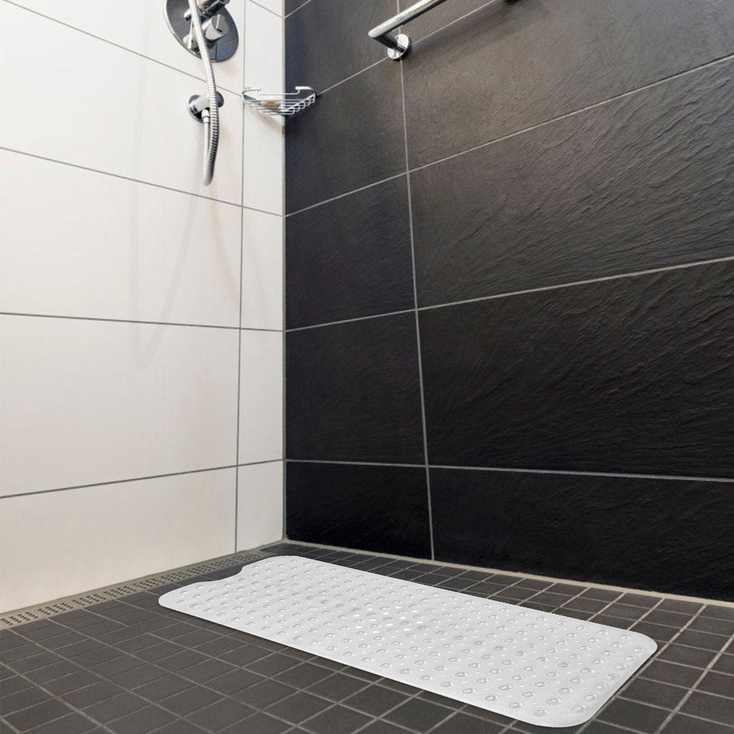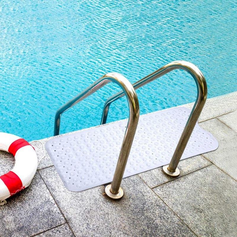 - Each mat features 200 suction cups on the bottom. helping the mat fix on the smooth floor and tub firmly. giving you and your family members a safer shower. There are 196 small drain holes allowing water to circulate. Warm Prompt: Please use the mat on clean and wet floor for strong suction effect.