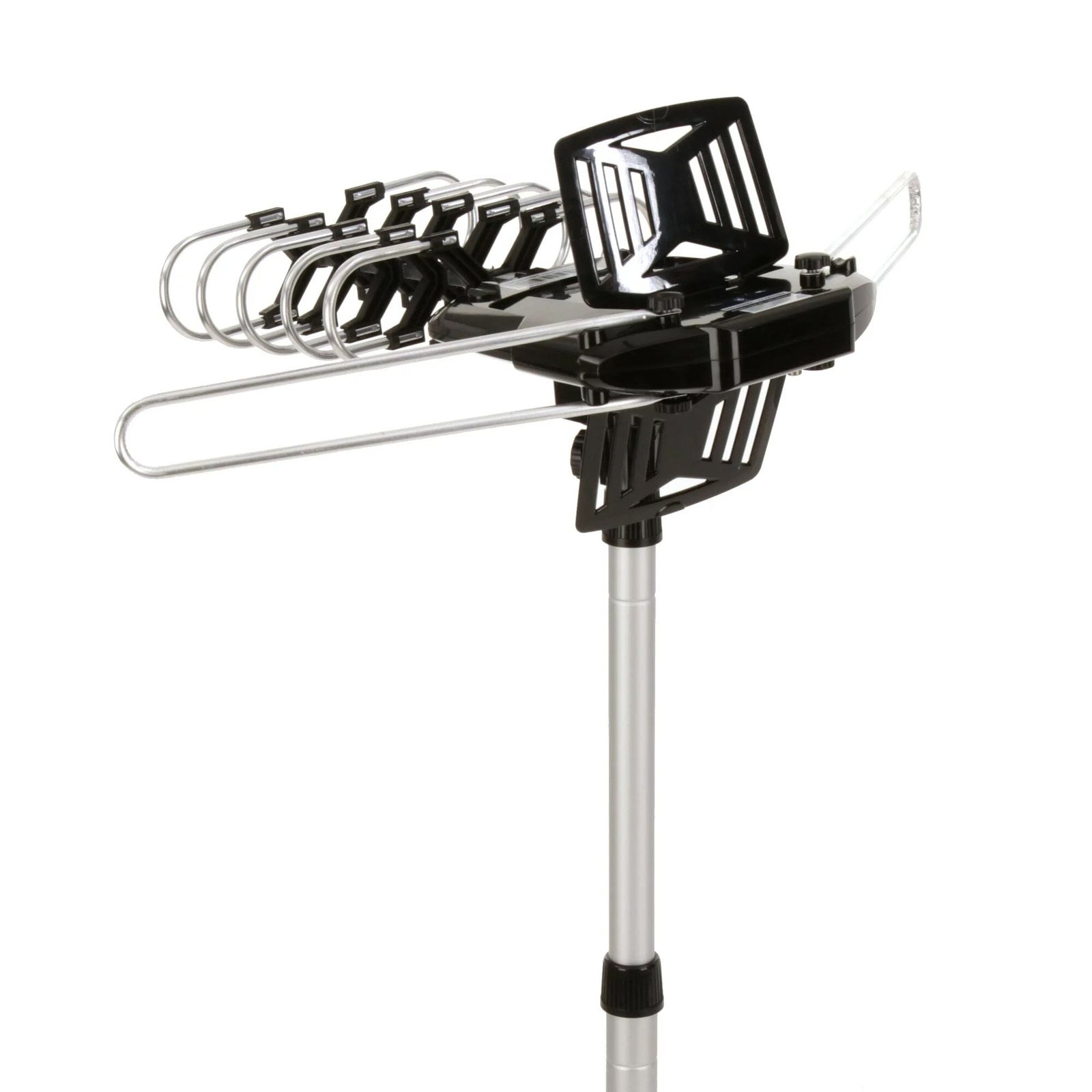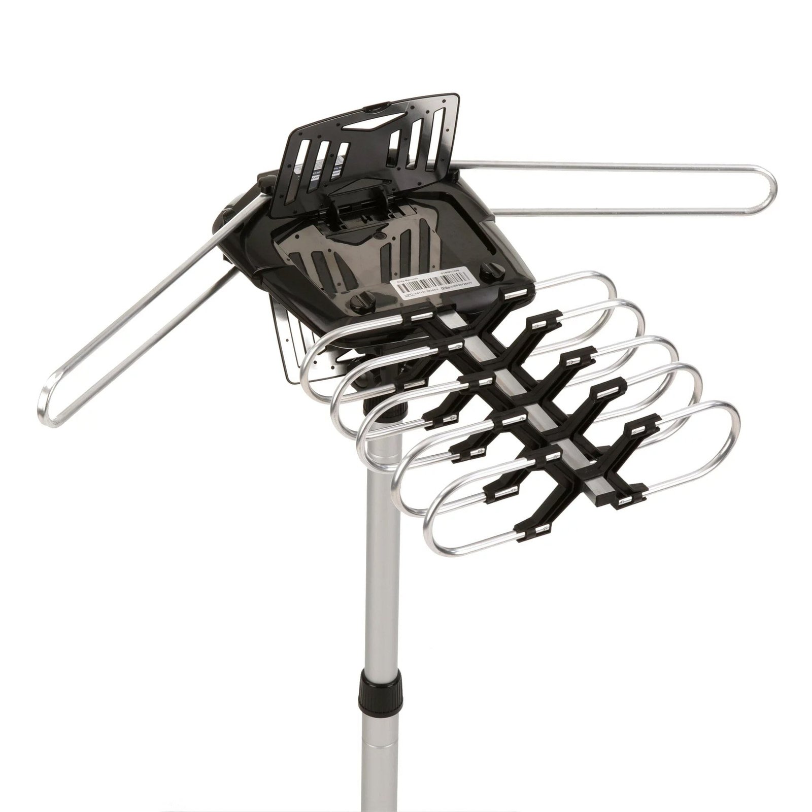 Upgrade your TV viewing experience with the ONN ONA18CH901 HD Outdoor Antenna. This amplified digital TV antenna boasts a powerful 150-mile range and 360-degree rotation for optimal reception. Included pole ensures easy installation and guaranteed signal strength. Enjoy crystal-clear. high definition channels without the hassle of a subscription.