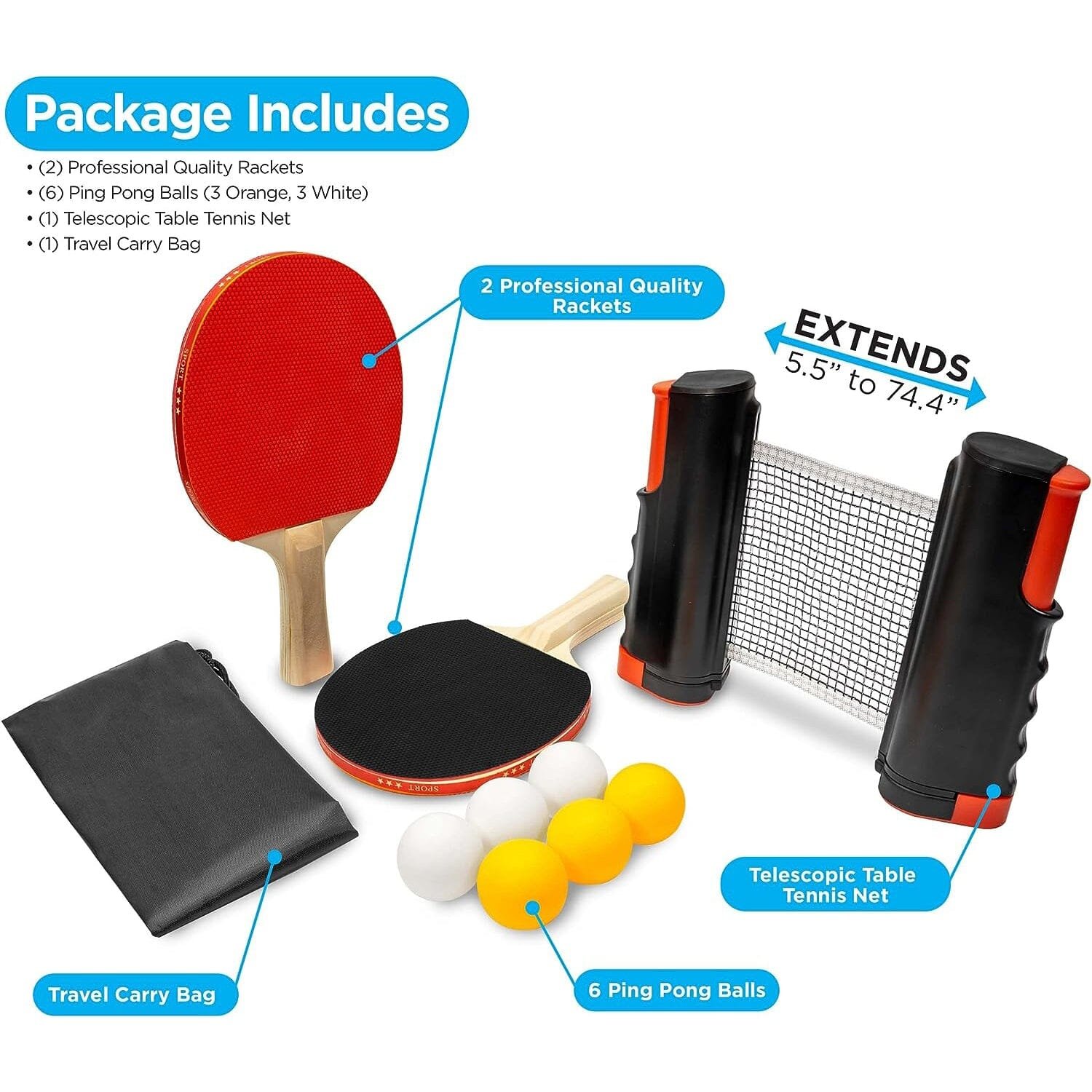 Ping Pong Set with 4 Paddles & Net for Any Table