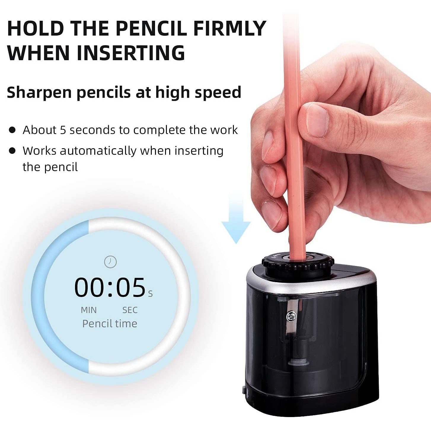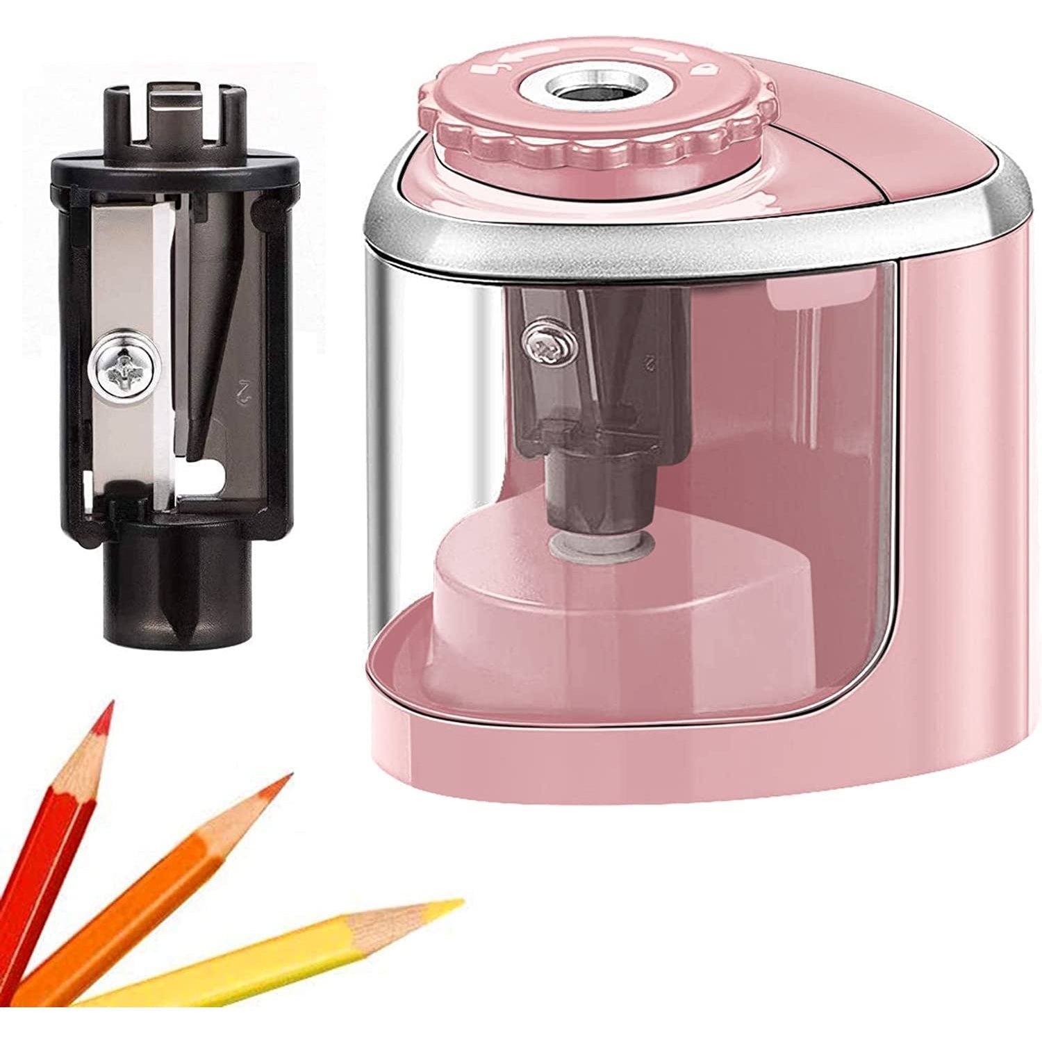 - Colored Pencil Sharpener Automatic Mode and Manual Mode: Our electric sharpener has two modes for you to choose from. Press the pencil to start work and automatically sharpen. enough to easily sharpen each pencil to the ideal and durable position in 3-5 seconds. Manual mode: when the battery is low. you can switch to manual mode to sharpen the colored pencils. and then let us become an outstanding pencil sharpener manual when drawing with children outdoors.